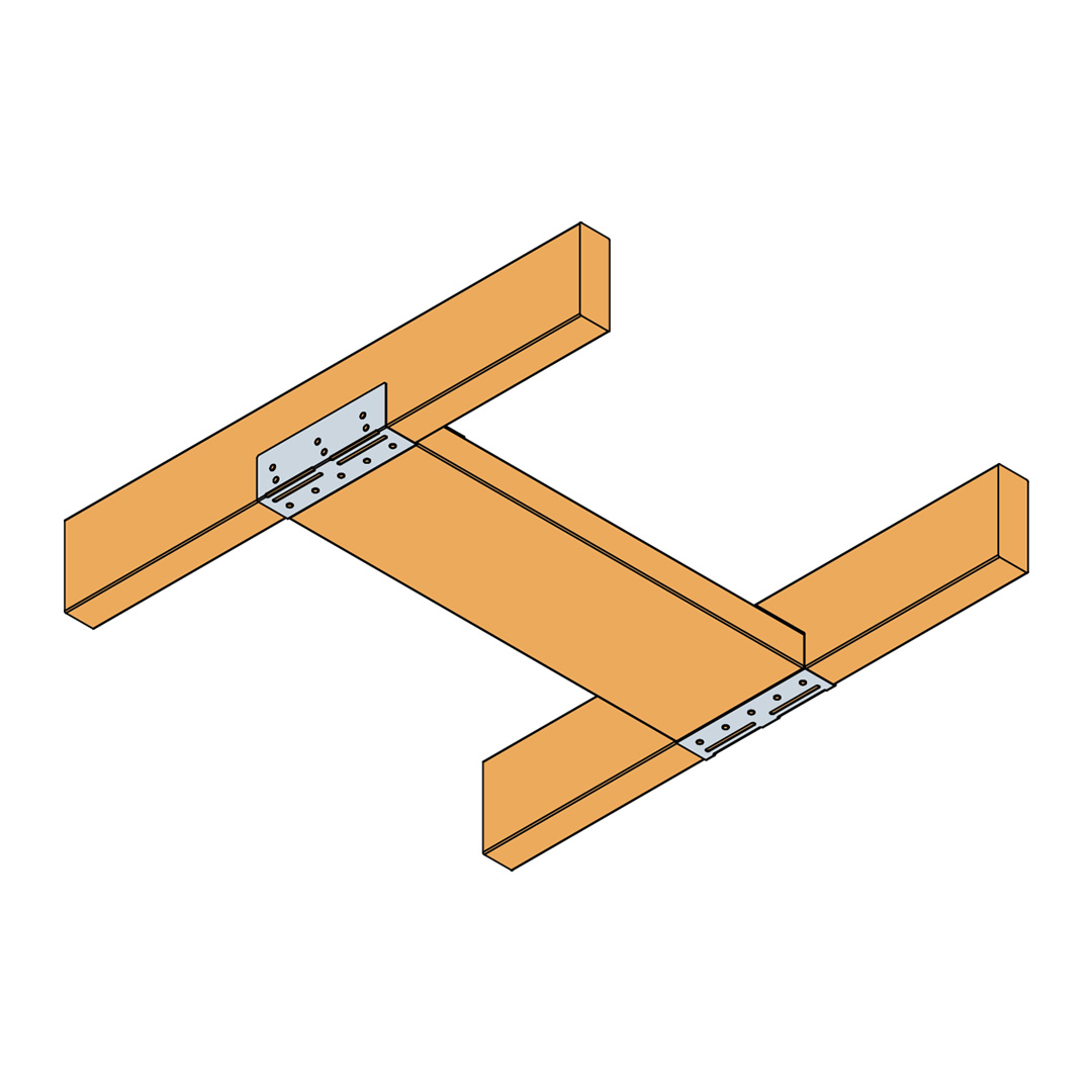 Nail BSB to each end of the timber bracing shelf using specified fasteners through all round holes. Locate assembly from underside at a maximum of 250mm from wall and nail to top chords using specified fasteners through all round nail holes. Nail diagonal bracing member to underside of timber shelf. Diagonal bracing size and fastener specification to be as defined in proposed BS 5268 Part 3.