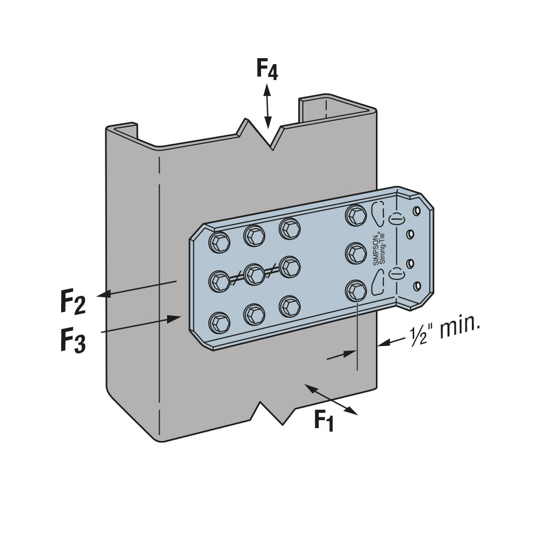 The FCB clip is an economical, high performance fixed clip connector that can be used for a variety of framing applications. It is rated for tension, compression and shear loads. It also allows the designer the flexibilty to specify different screw and anchorage patterns to conform to desired load levels.