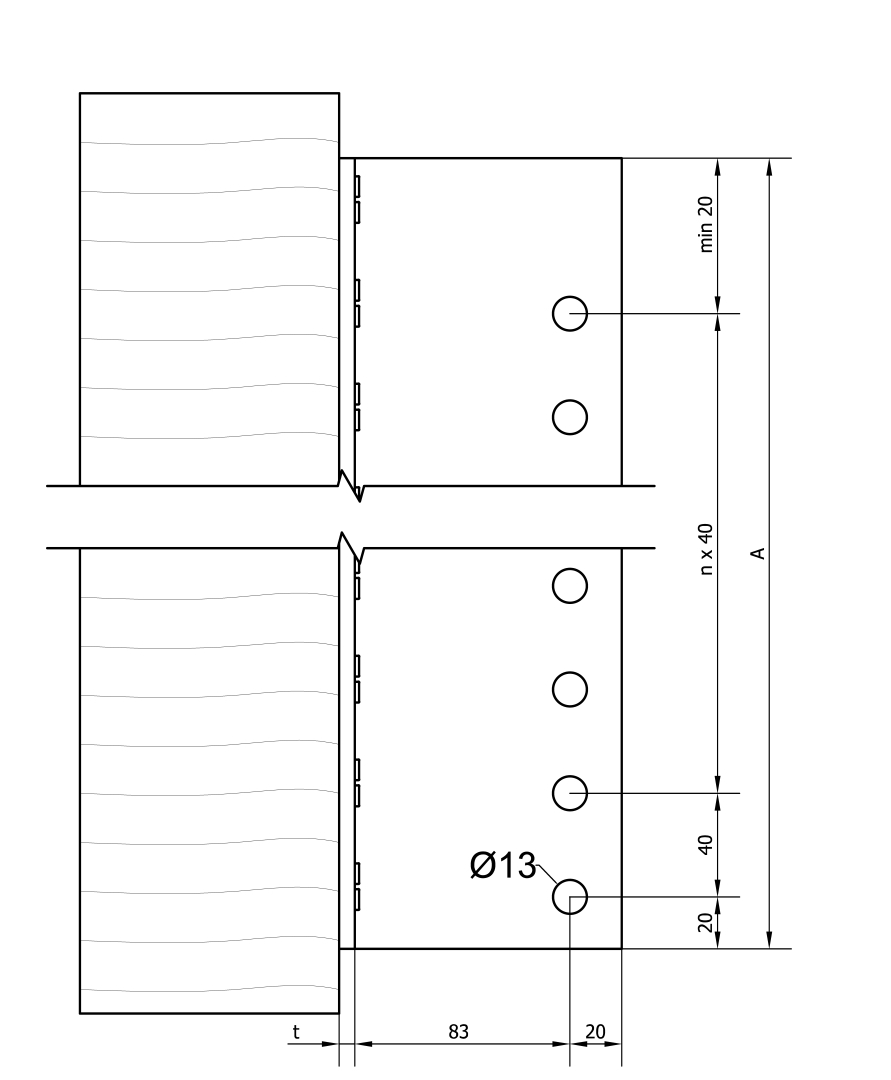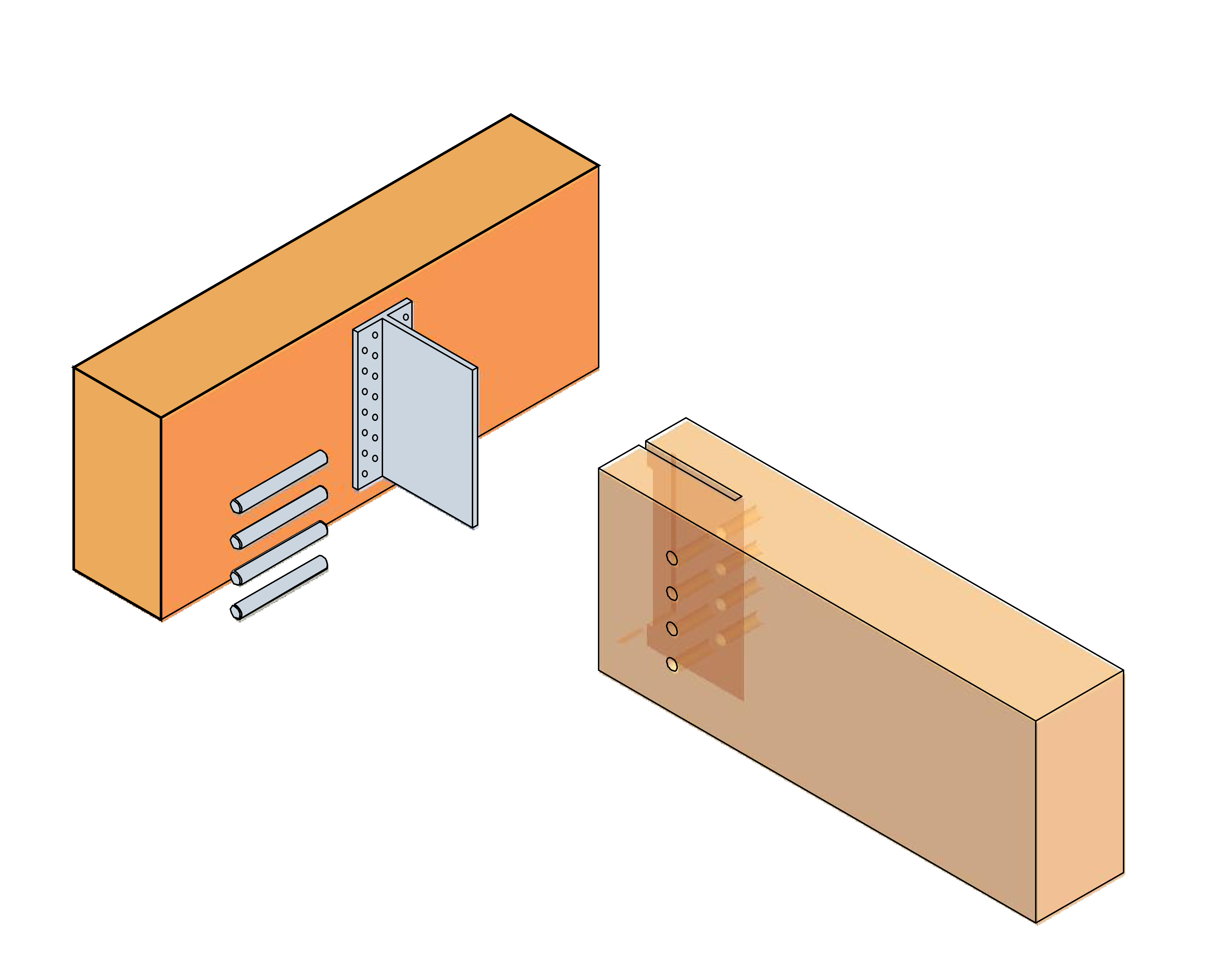 It is designed to be fixed to the header timber and then fully inserted into a slot in the in-coming beam, and held in place with dowels. Holes are drilled through the timber and fin of the BTALU, allowing accurate alignment. This method provides an aesthectically pleasing connection for feature beams.