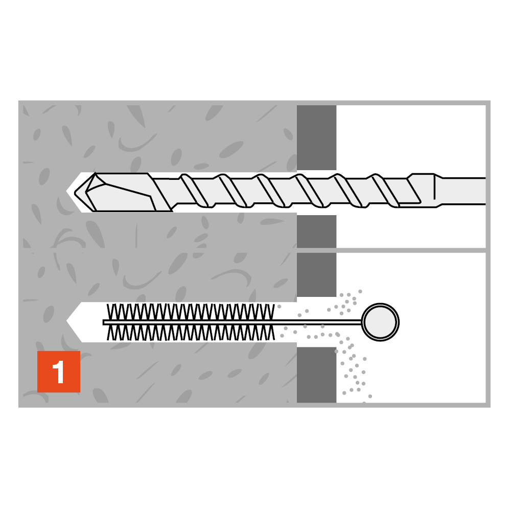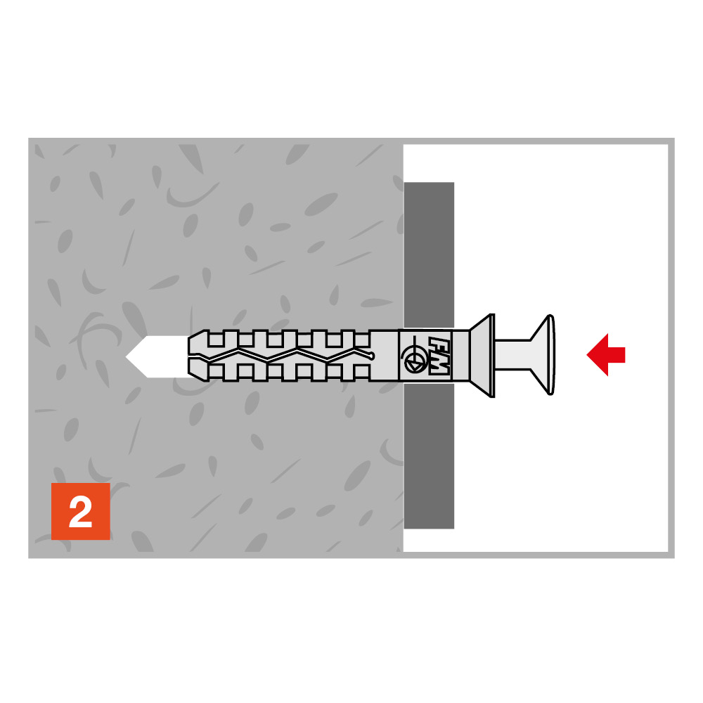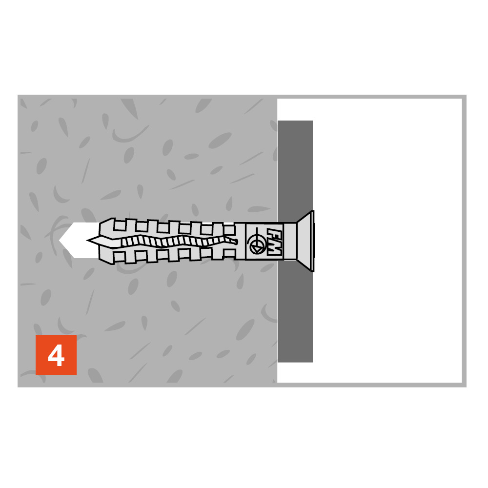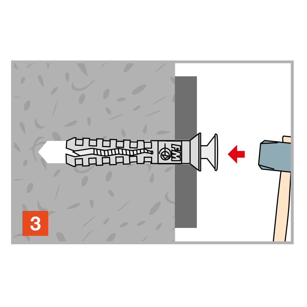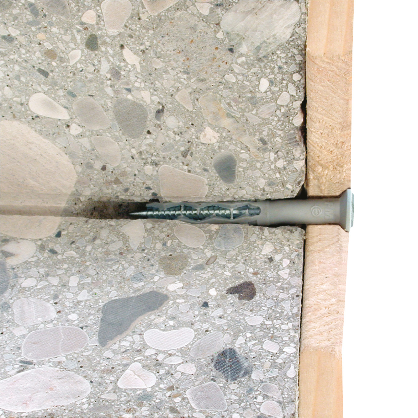 The TSS nylon plug in Ø6 and Ø8 mm versions are approved for fastening in concrete. When the nail screw is driven into the anchor plug, it is expanded and securely anchored in the building material.
