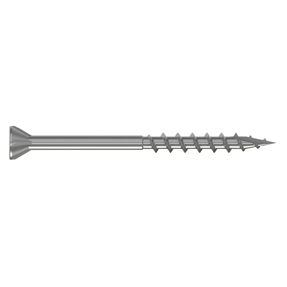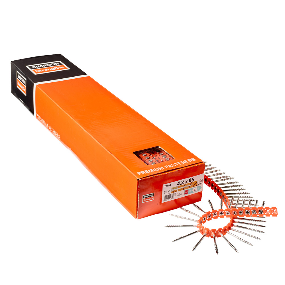 The TTFA4 is marine grade A4 stainless steel. Suitable for outdoor use and use in severe weather conditions, the TTFA4 has a ribbed countersunk head to ensure a neat finish and type 17 point to prevent timber from splitting upon insertion. The TTFA4 will not cause any discoloration of timber around the screw and is suitable for many timbers including oak, cedar and larch. TTFA4 is CE marked to EN14592, has a 6 lobe drive with driver bits included in every box of screws.