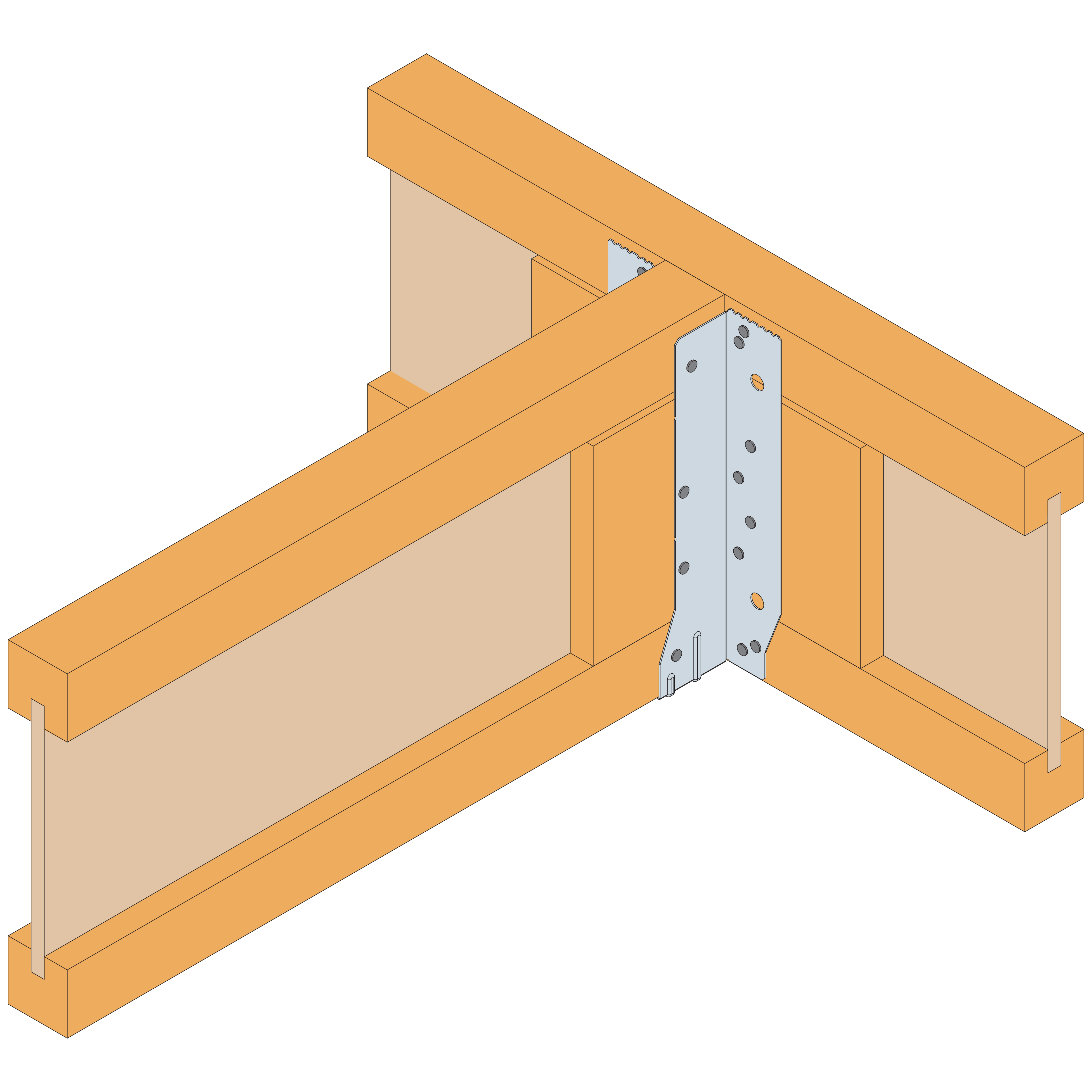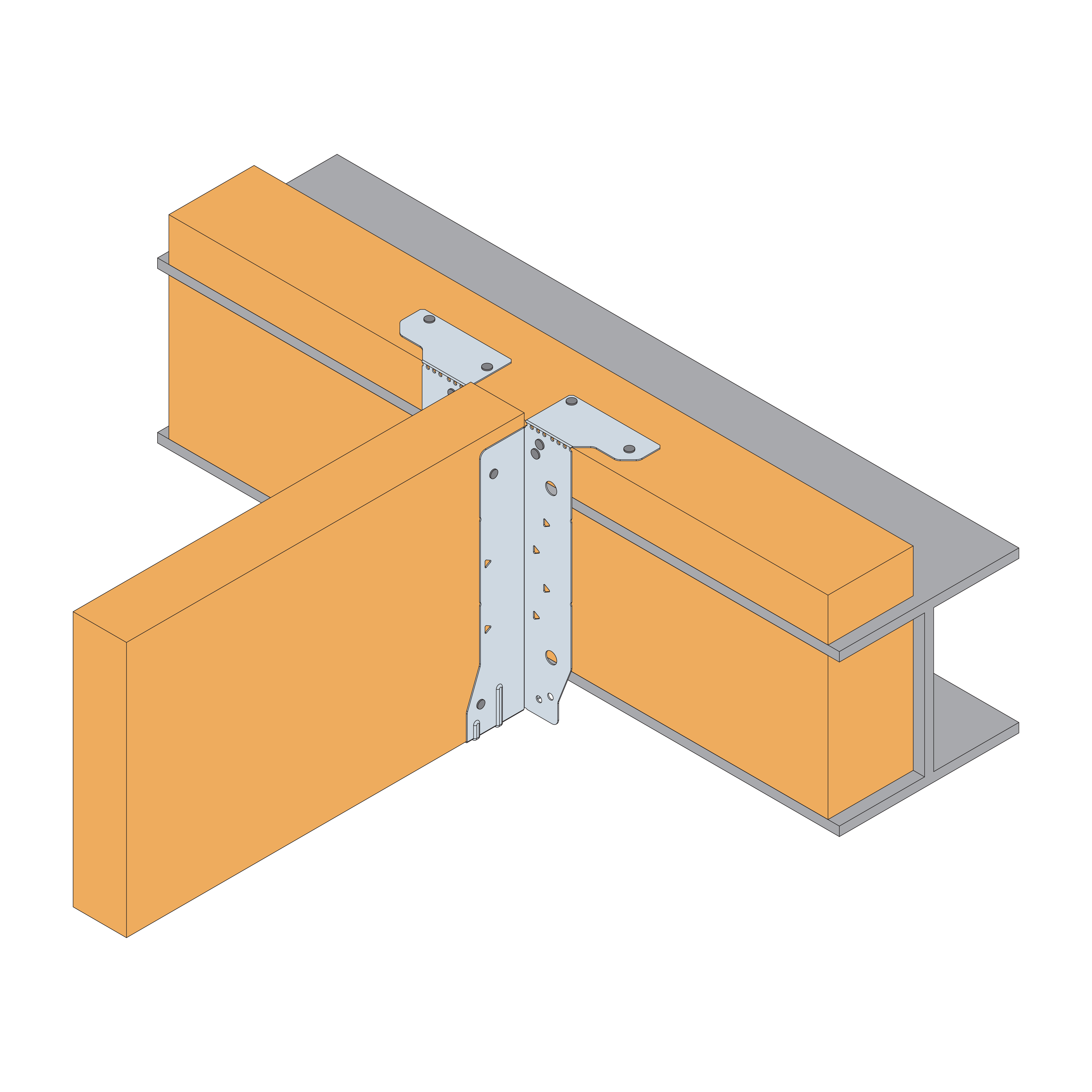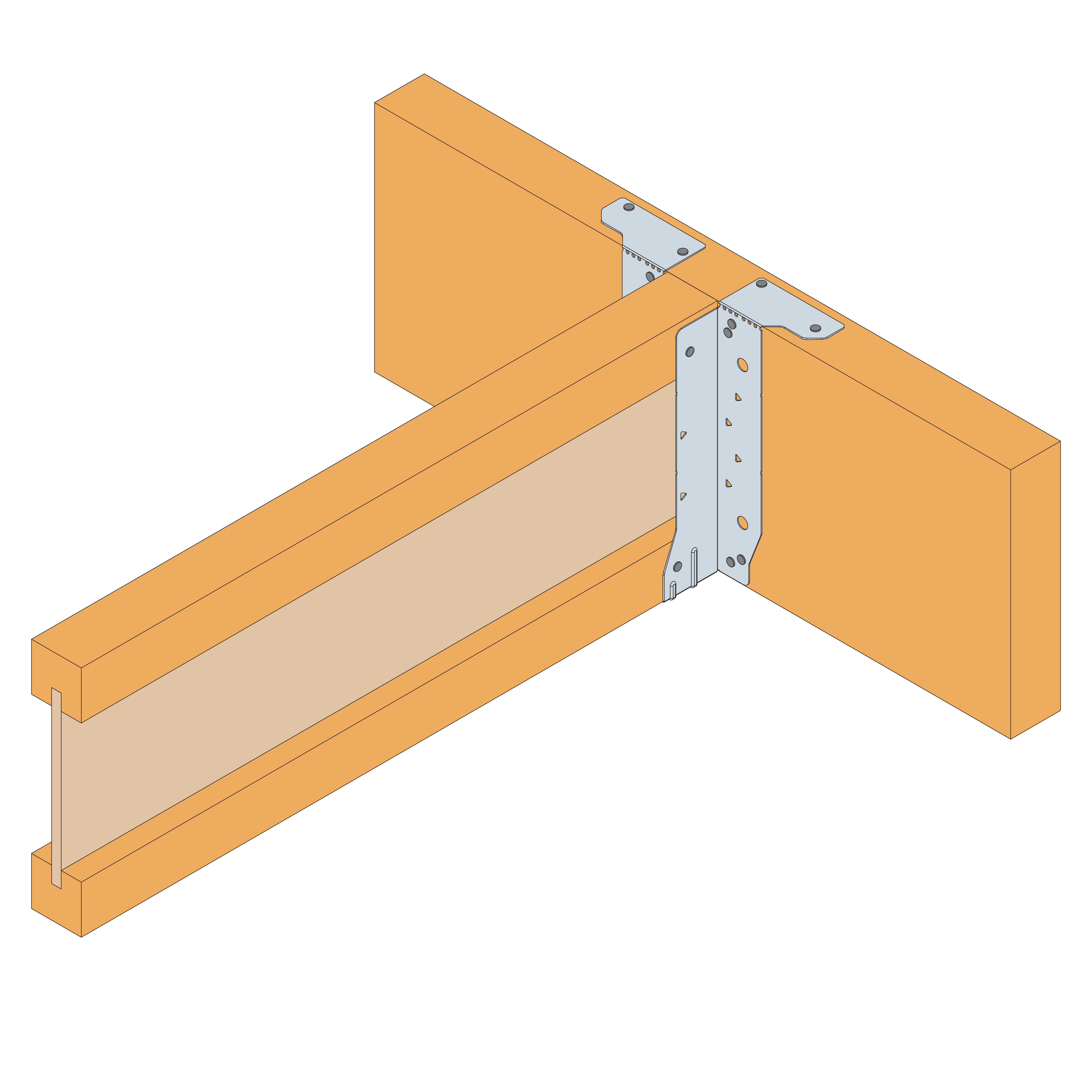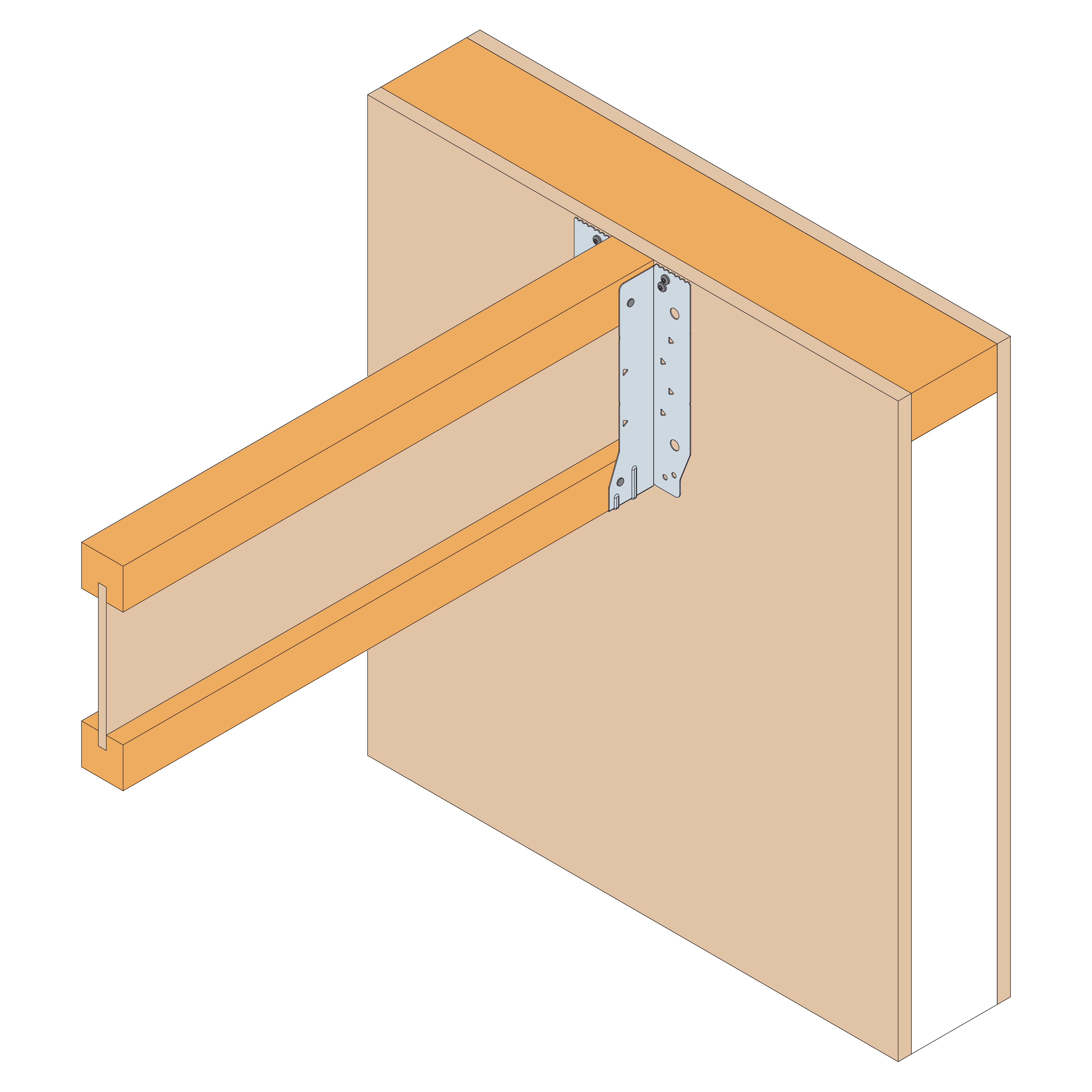 - Insert the incoming joist, ensuring it is tight against the back of the EWH (maximum allowable gap is 3mm between end of incoming joist and face of hanger) and fill all round holes in the side flanges.