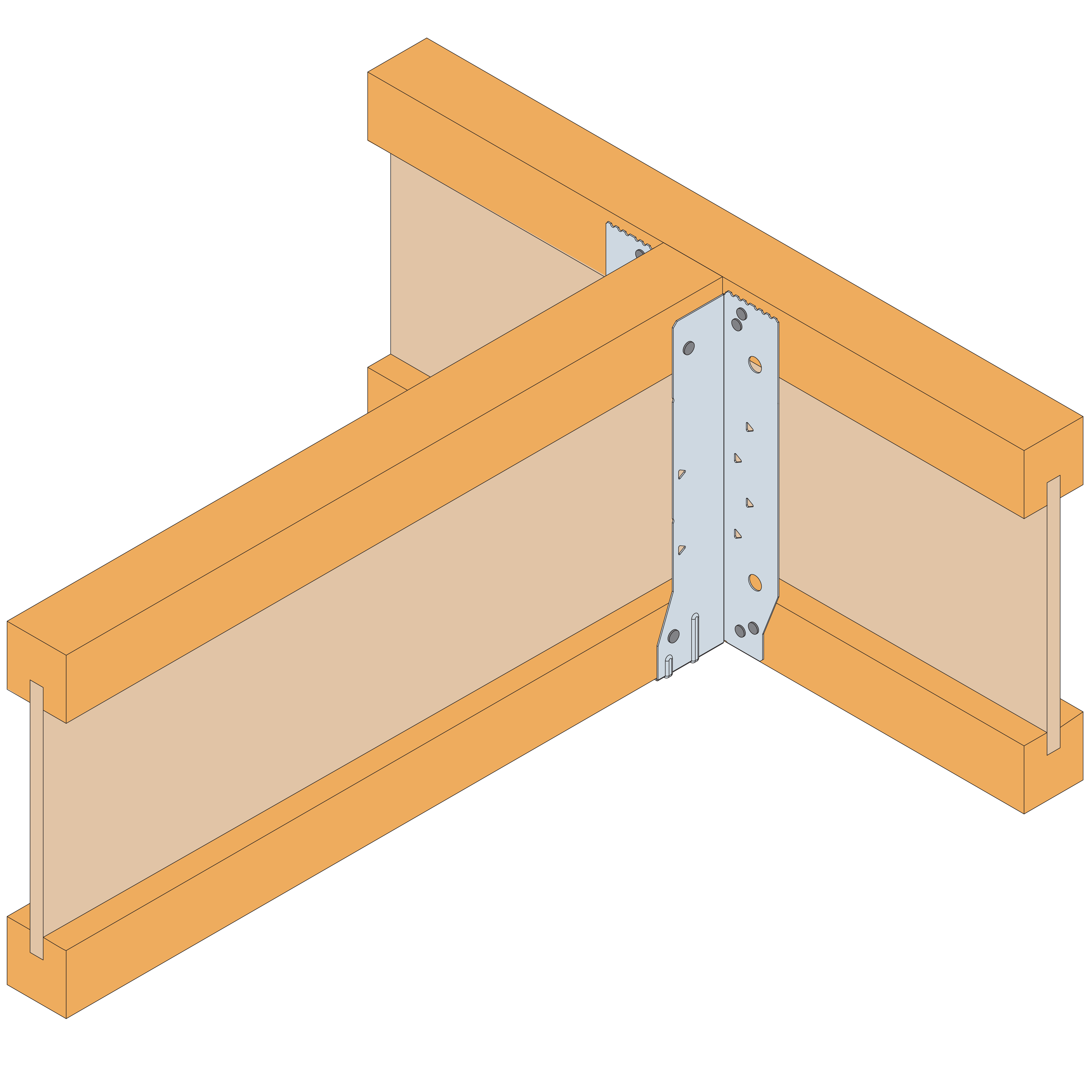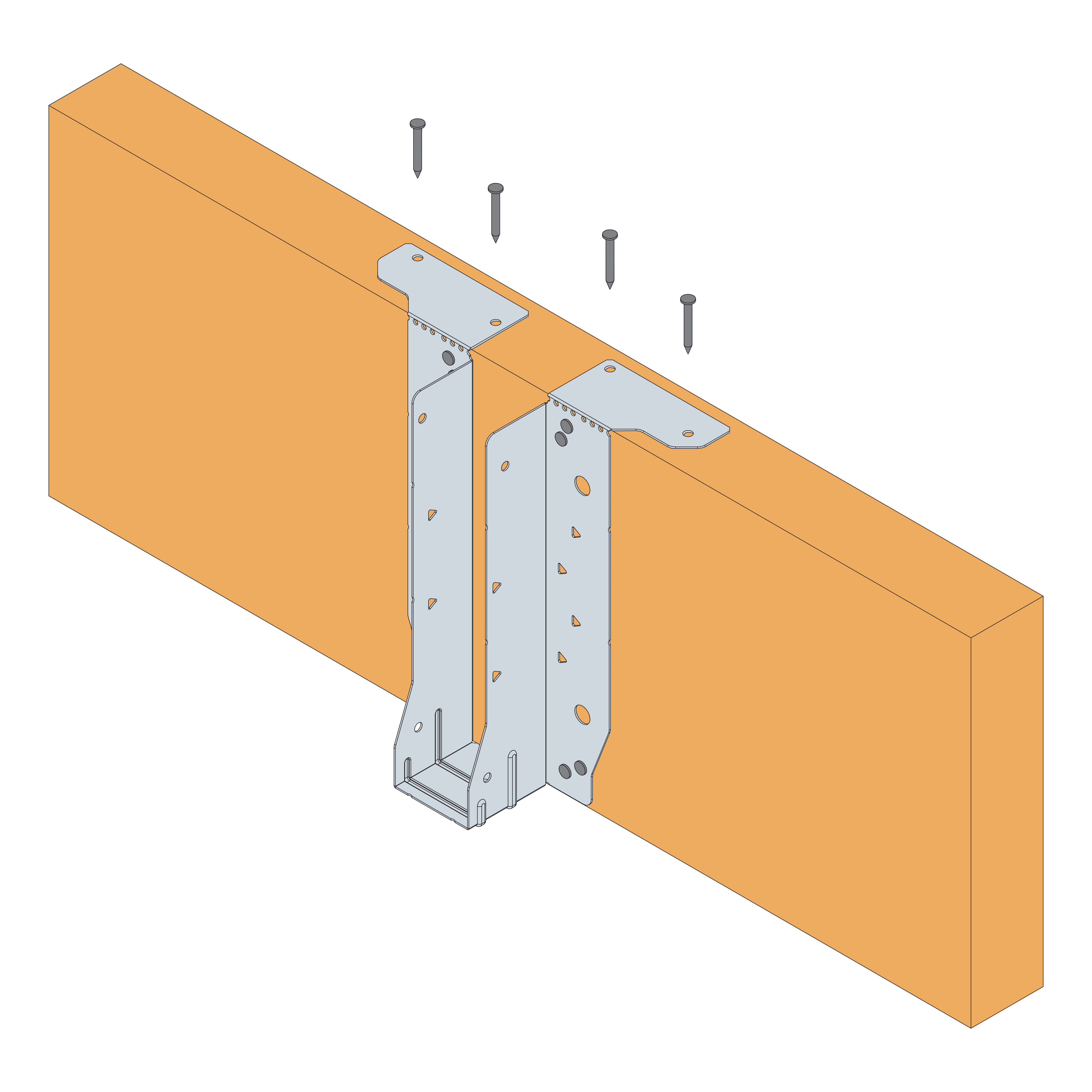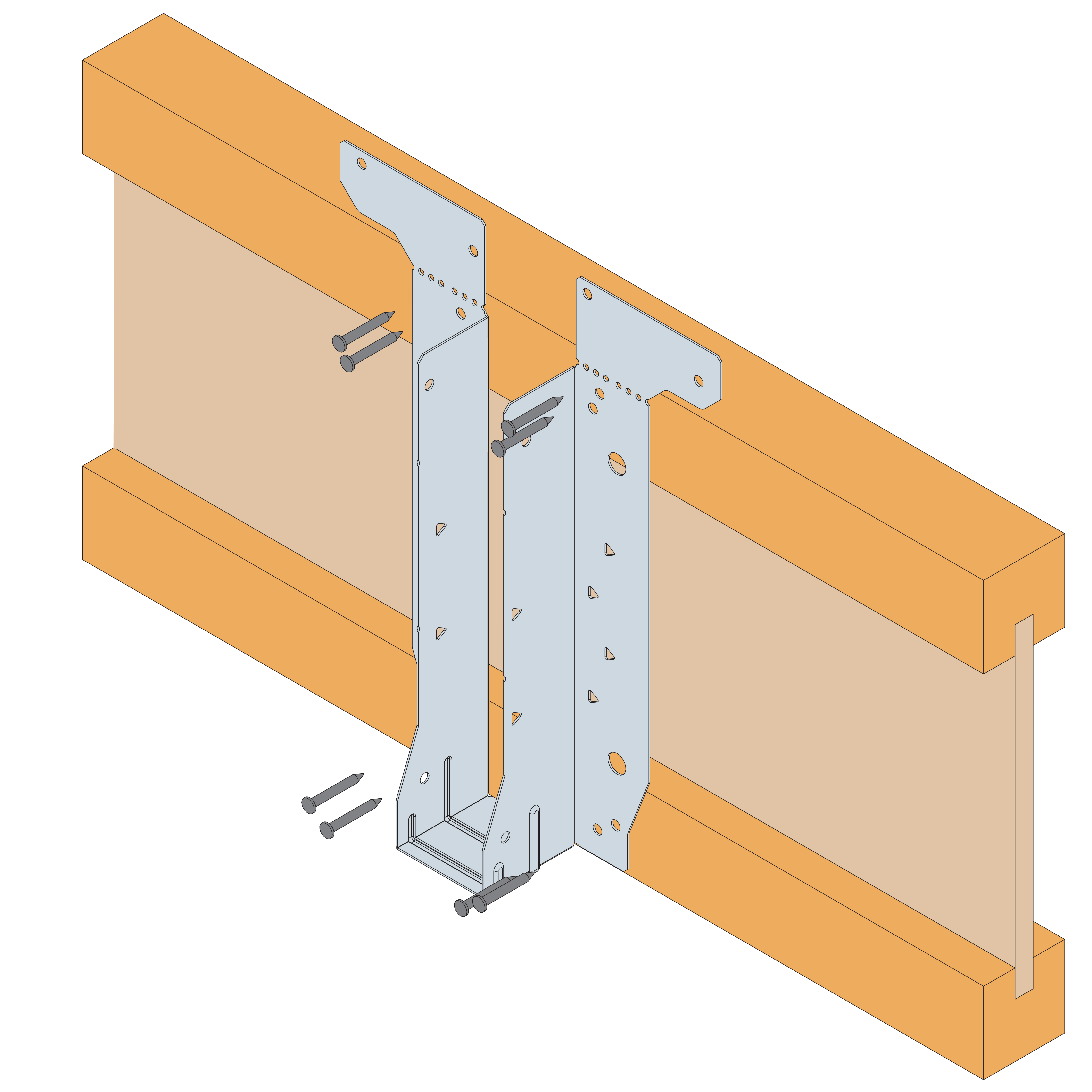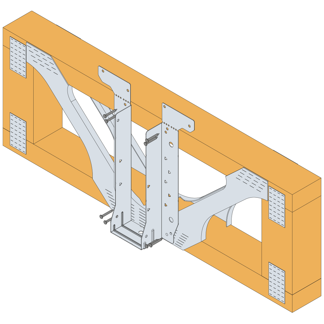 - Sit the carried member into the hanger and install 4 No 3.75x30mm square twist nails through the round holes into the side of the supported member.