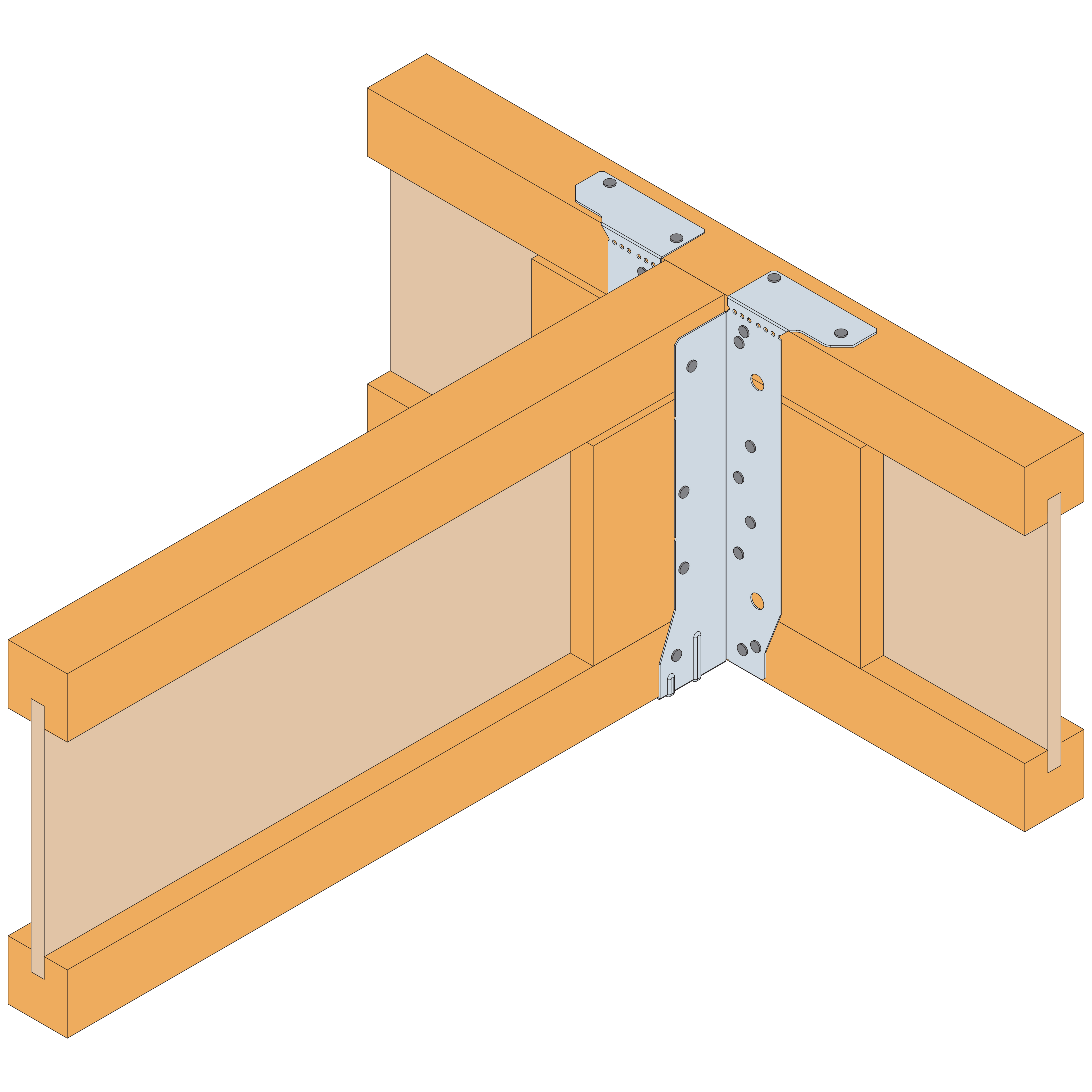 - Ensure hanger sides are vertical and fill all face round holes then the triangular holes, starting from bottom upwards, with the specified fastener.