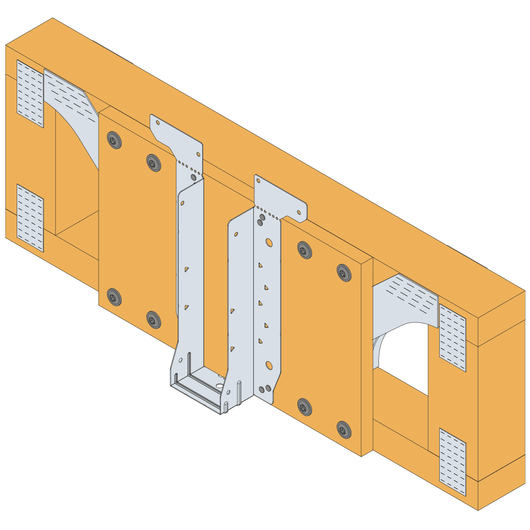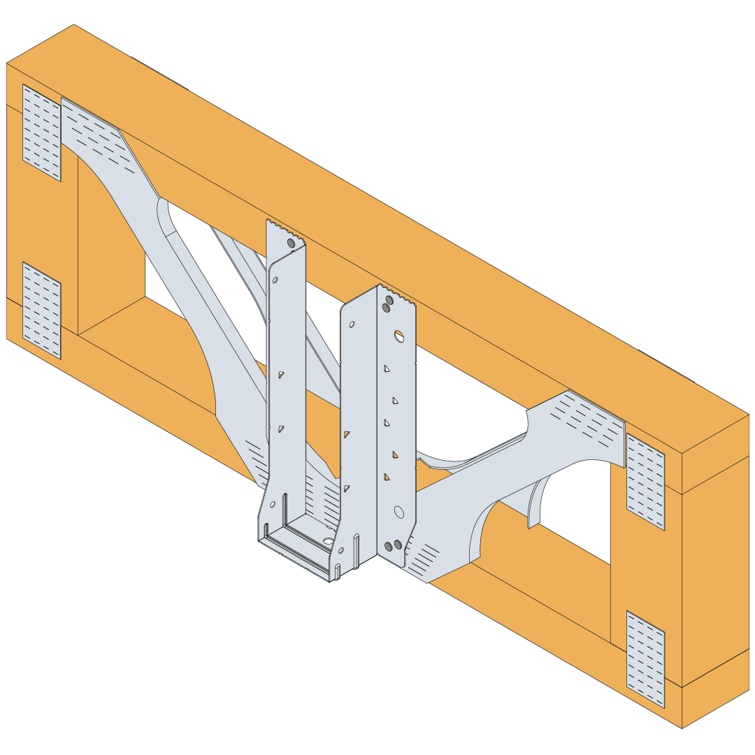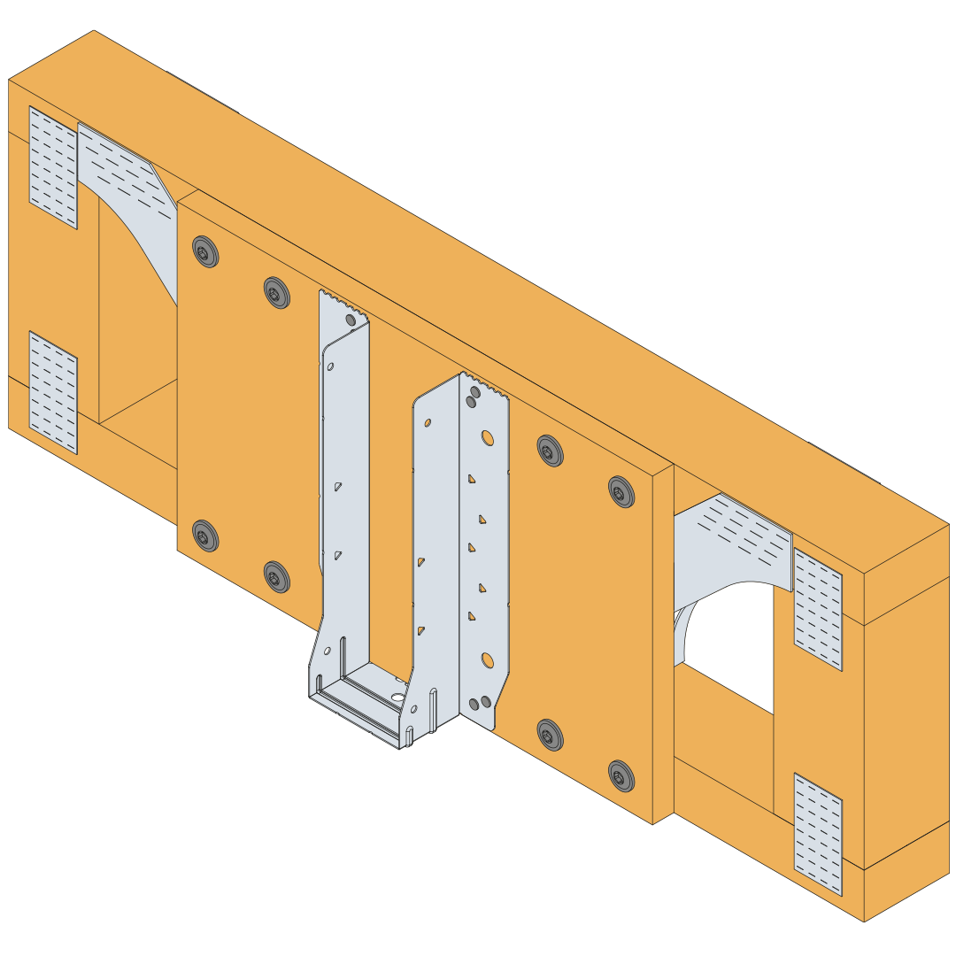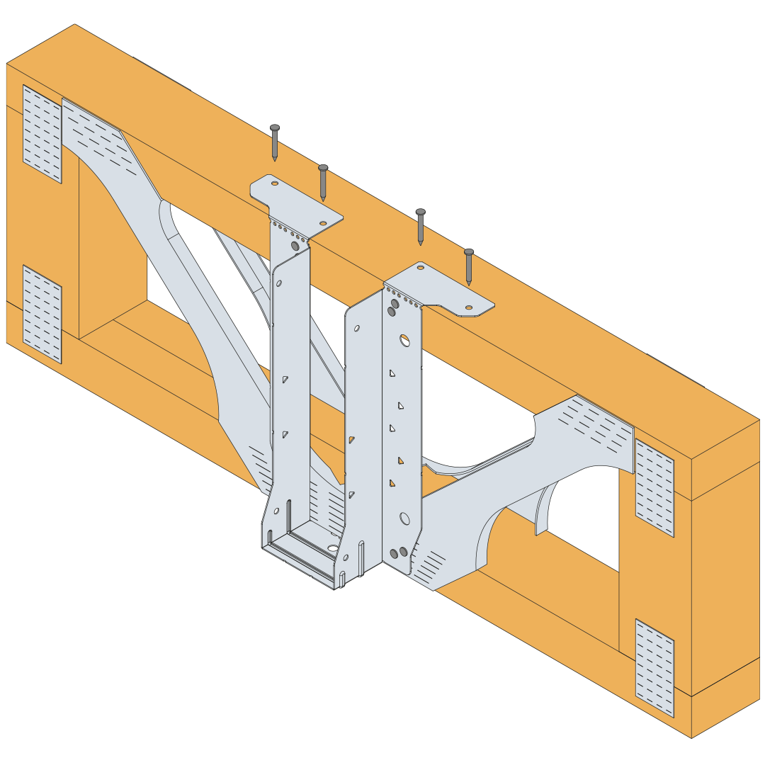 - Position the EWH hanger onto the face of the SIP so that the top of the carried member will finish level with the top of the SIP.