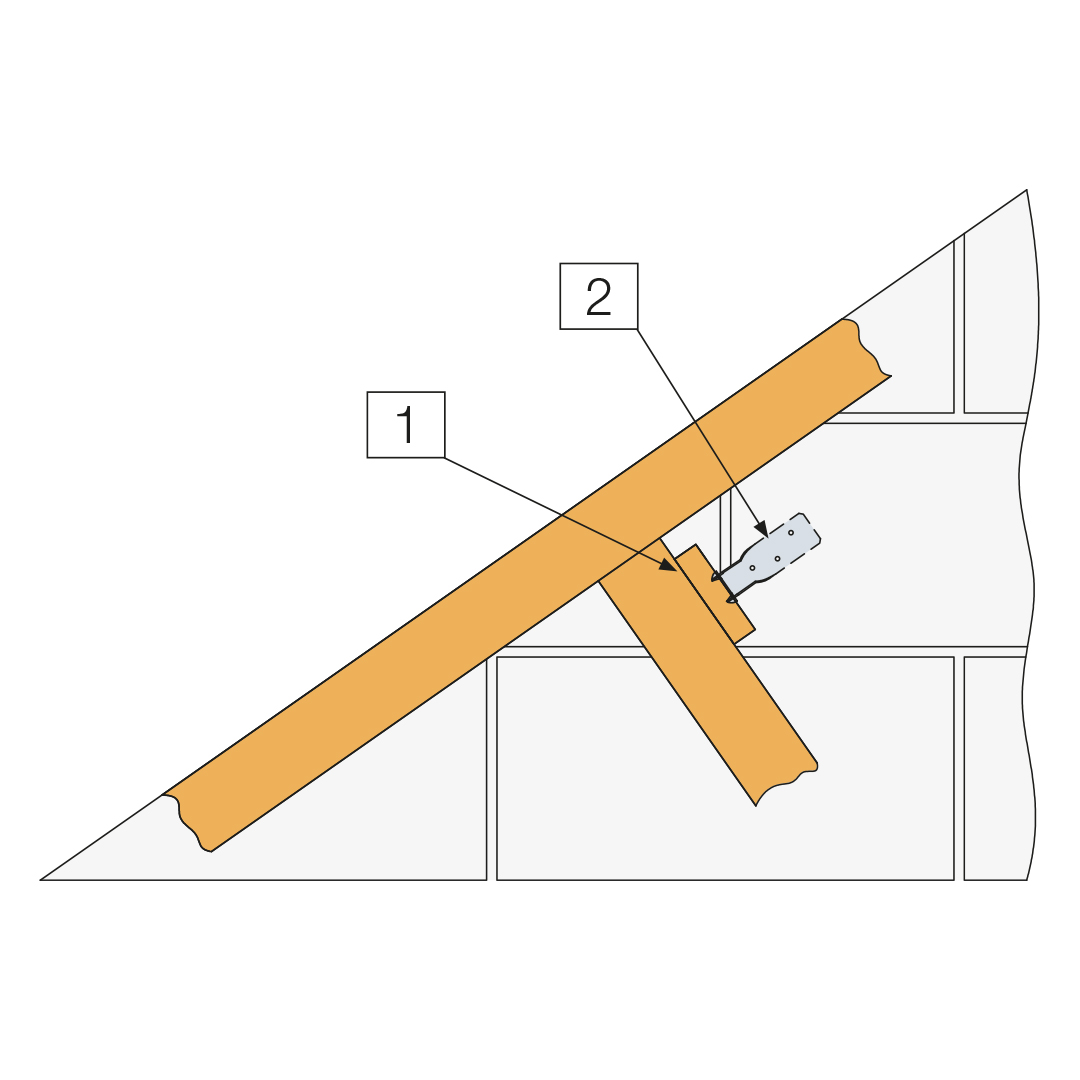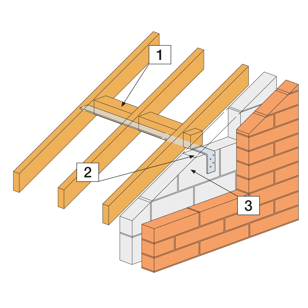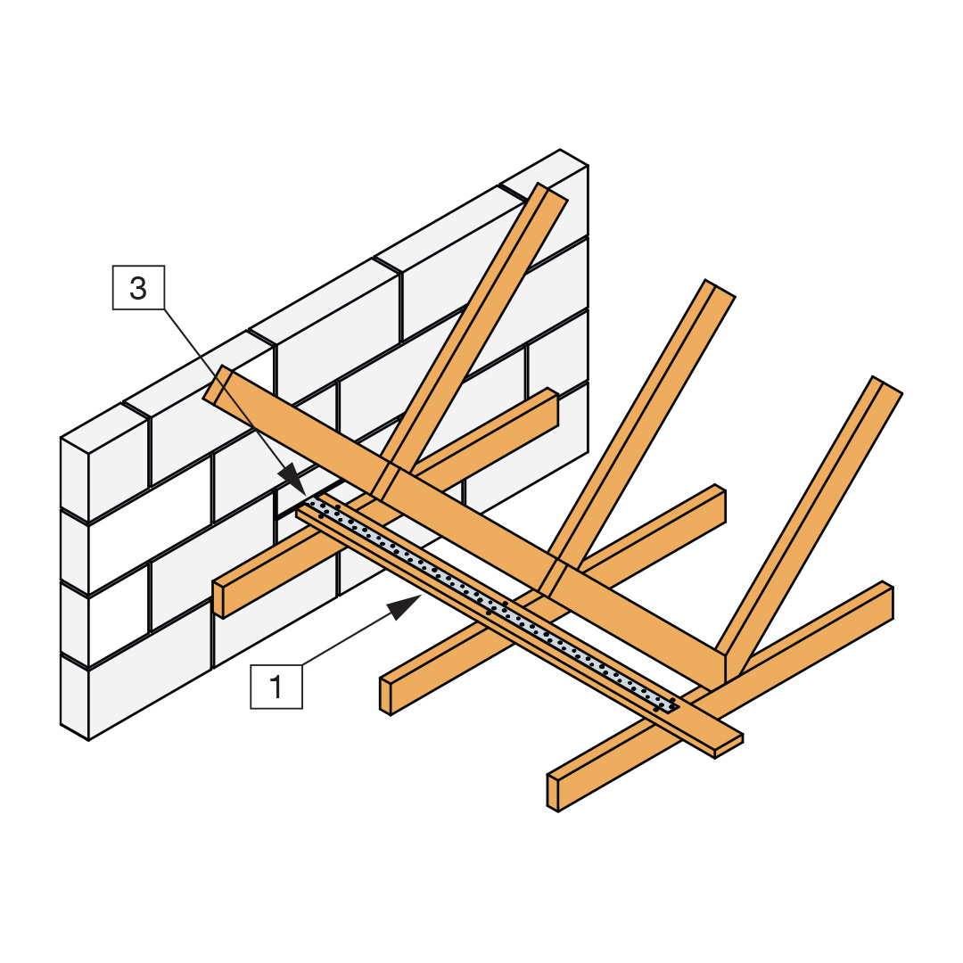 - Install HES or H strap on the 25 x 100mm longitudinal Rafter bracing (1)