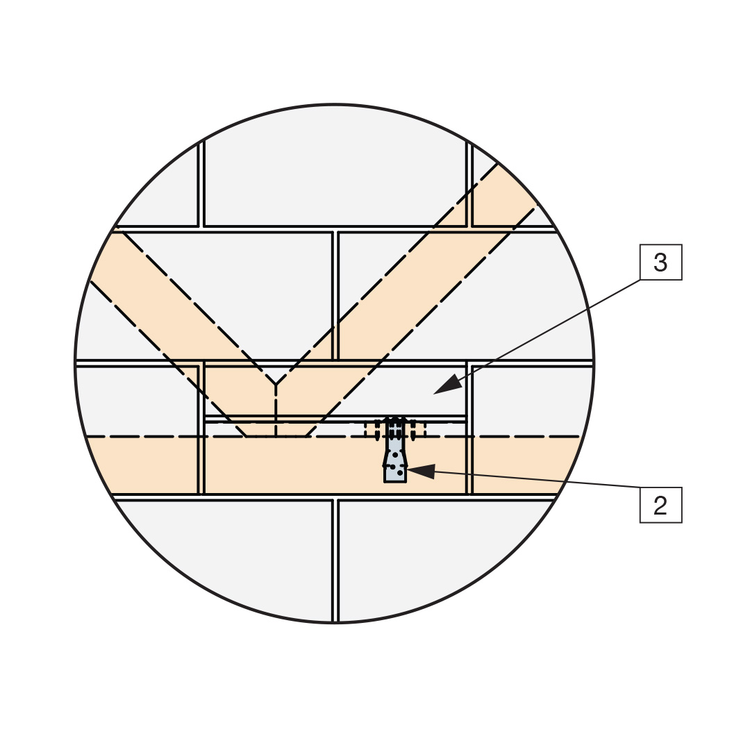 - Install HES or H strap to underside of solid noggings. Noggings to be fixed horizontally to avoid twisting of the restraint straps. (1)