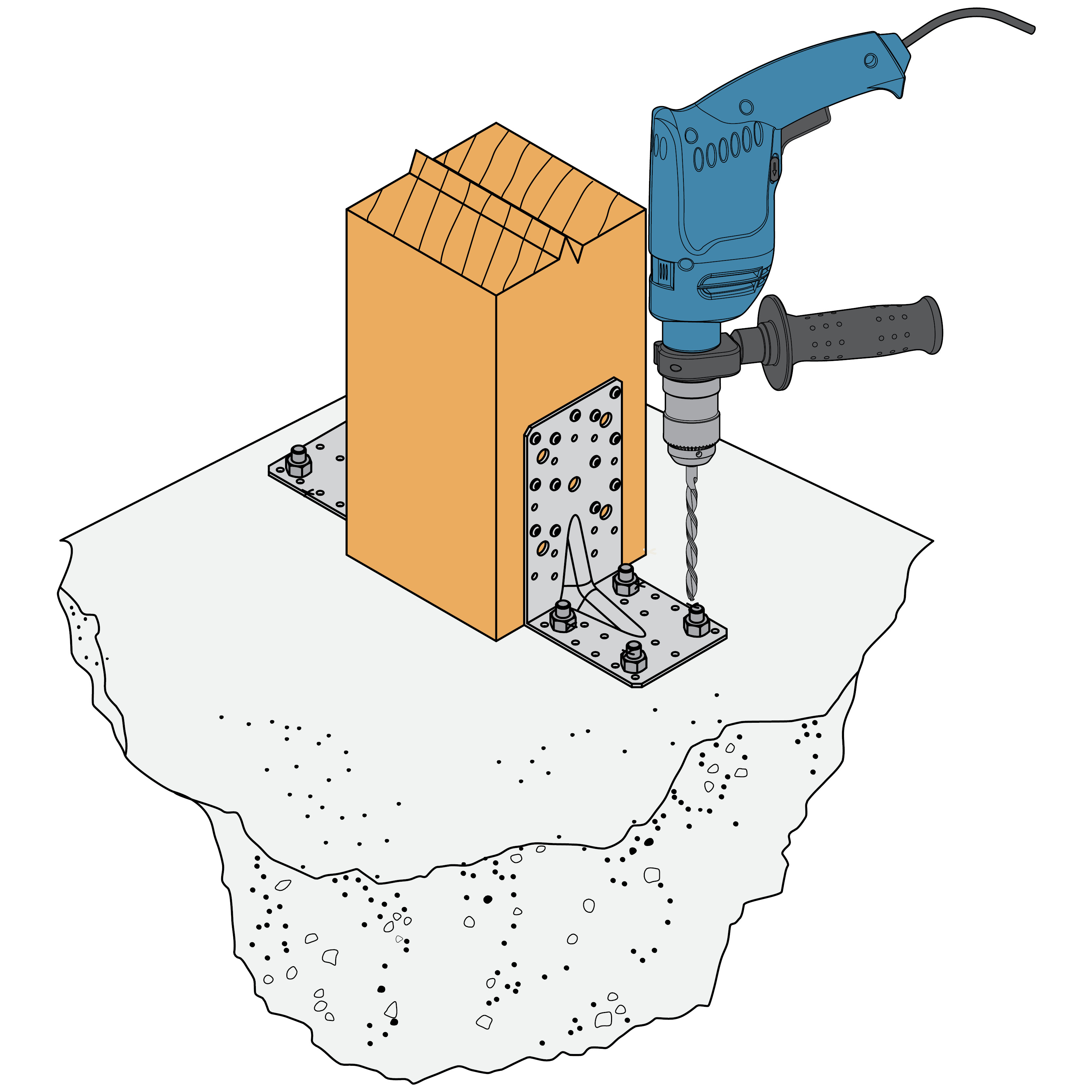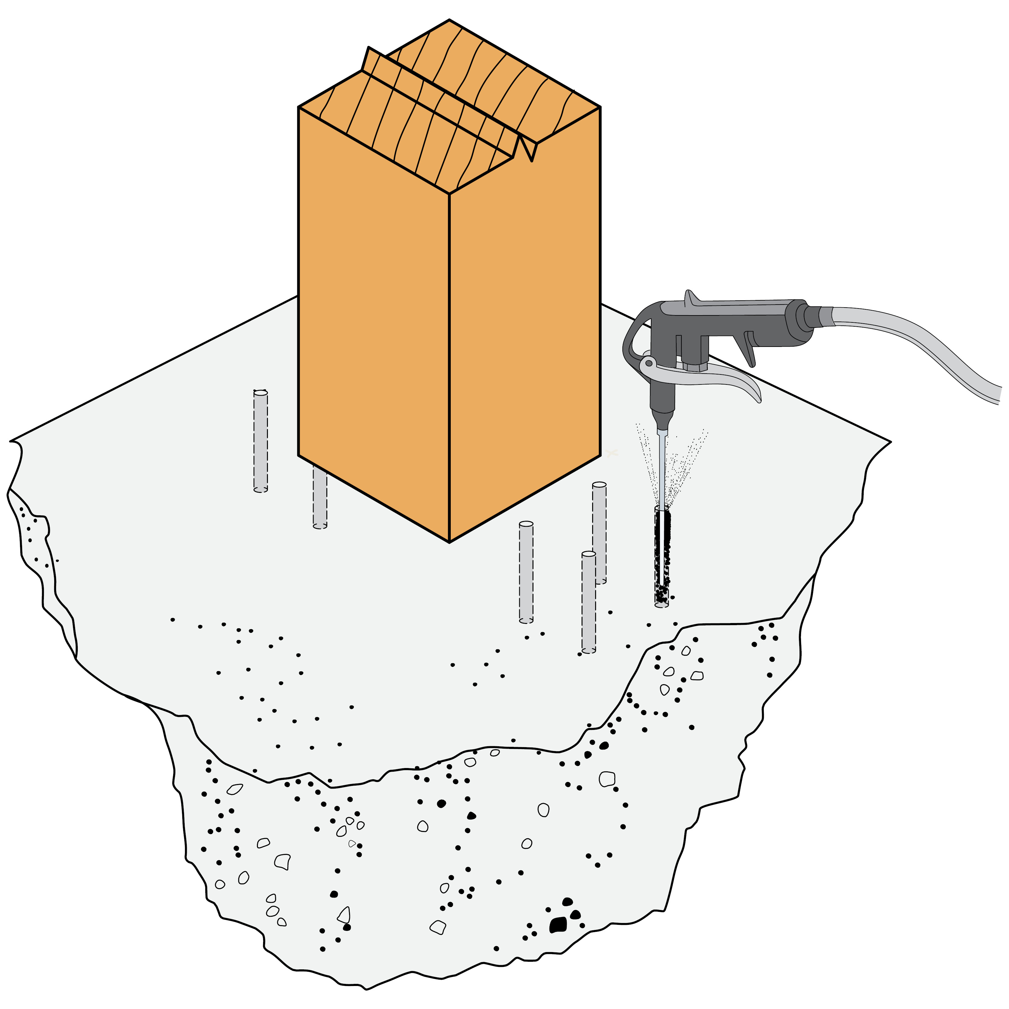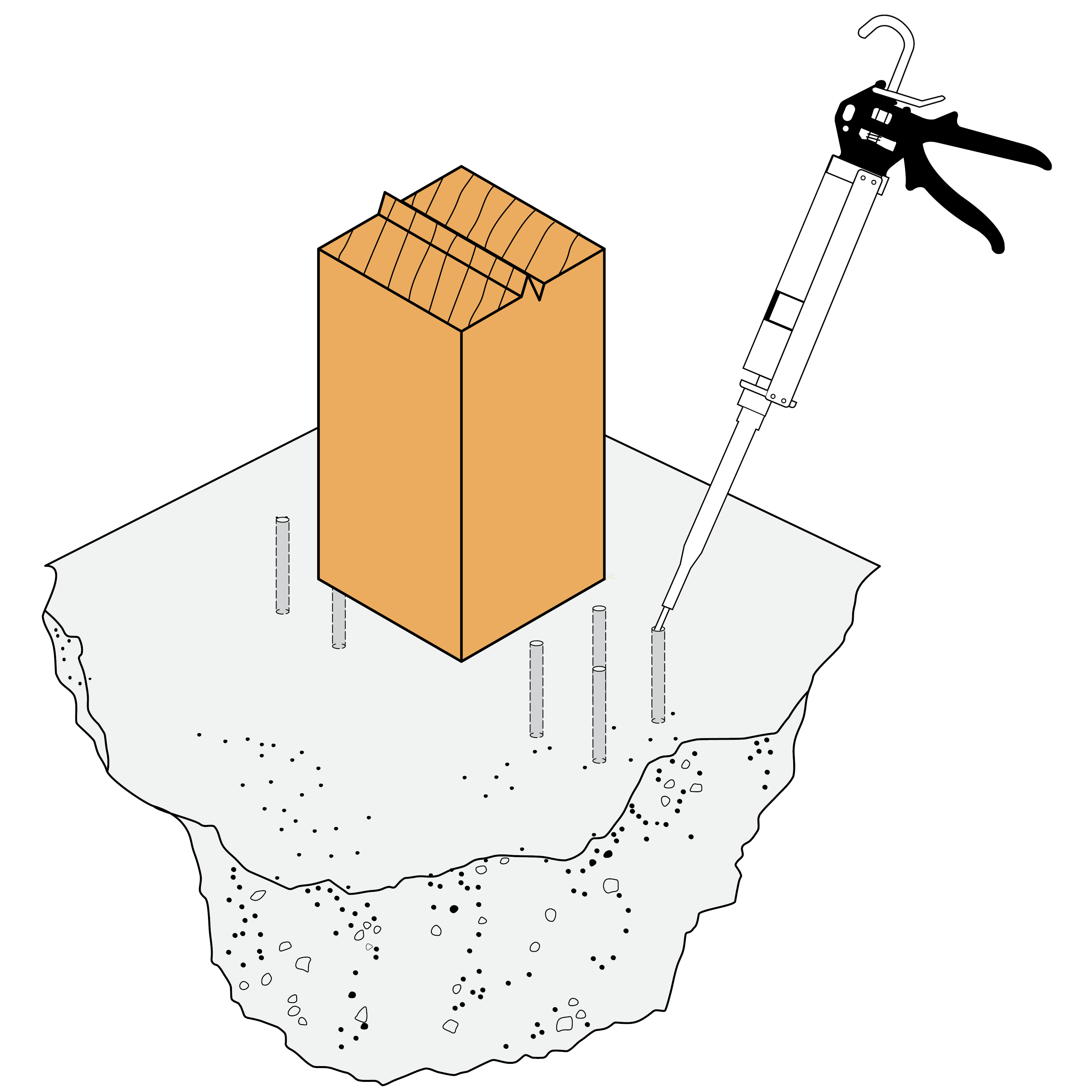 - Chemical anchor: AT-HP resin + LMAS M10-120/25 or LMAS M12-150/35 threaded rod.