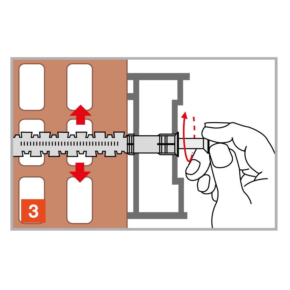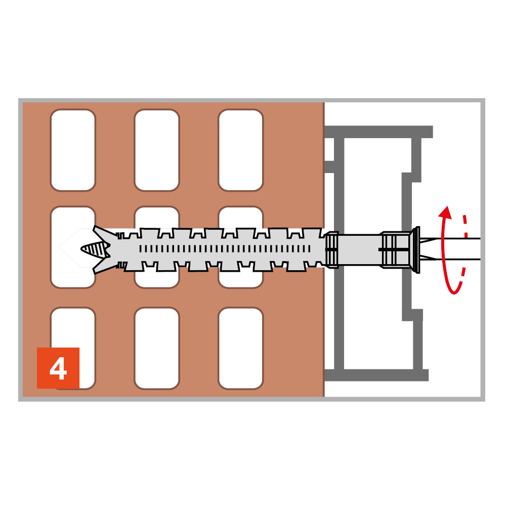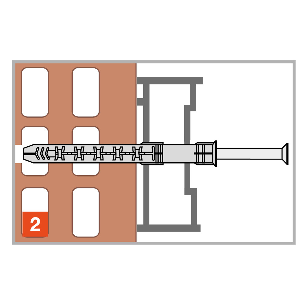 The FM-X5 frame plug in Ø8 and Ø10 mm versions in combination with a countersunk or hexagon head screw is approved for multiple fixings in concrete and masonry.
