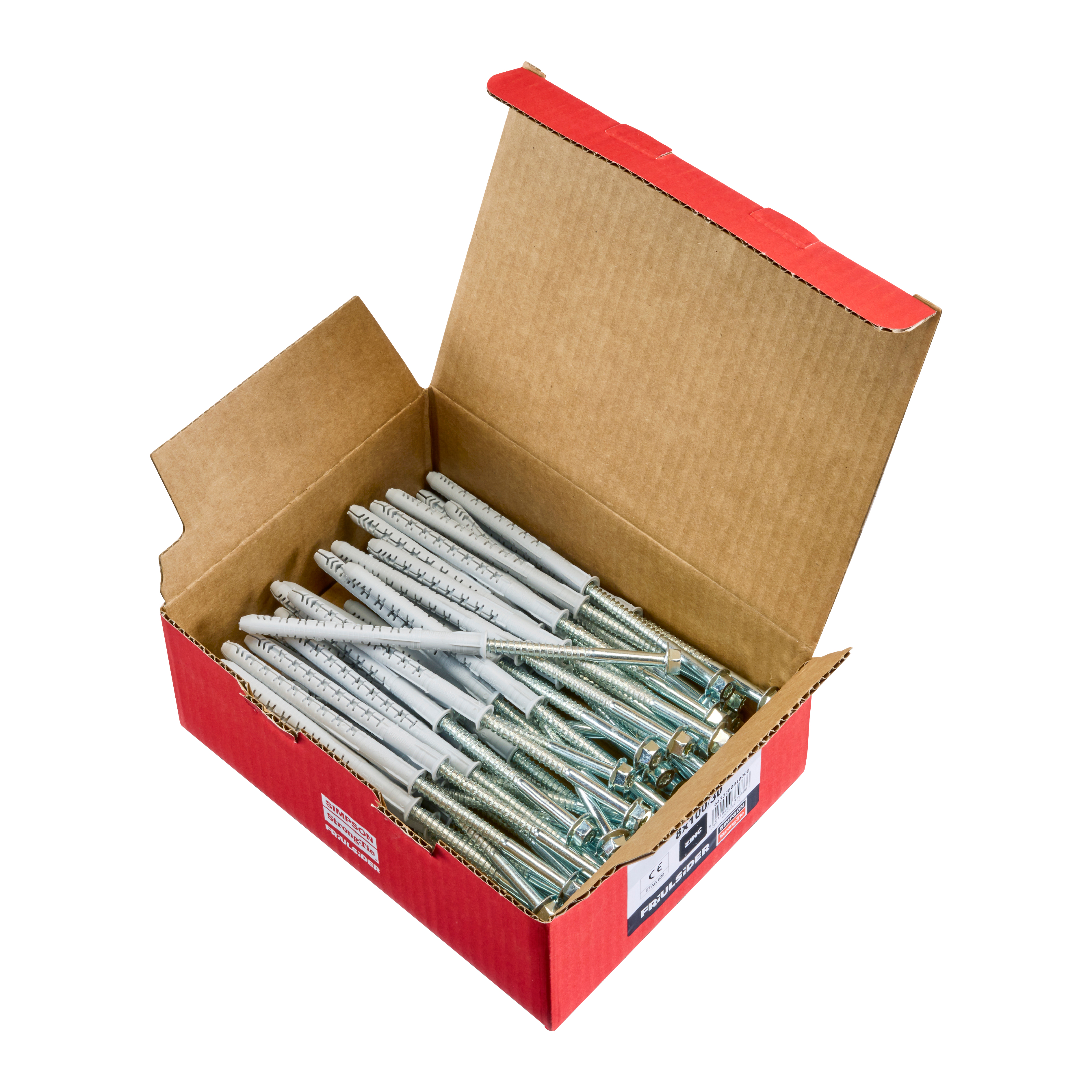 | References | Product Reference | Hole diameter x anchor length [doxL] [mm] | Max. fixture thickness [tfix] [mm] | Min. hole depth [h1] | Nominal embedment depth [hnom] [mm] | Min. support thickness* [hmin] [mm] | Hole diameter in fixture [df] [mm] | Screw diameter [d] [mm] | Screw length [Lv] [mm] | Bit | Qty per box | Qty per outer box |