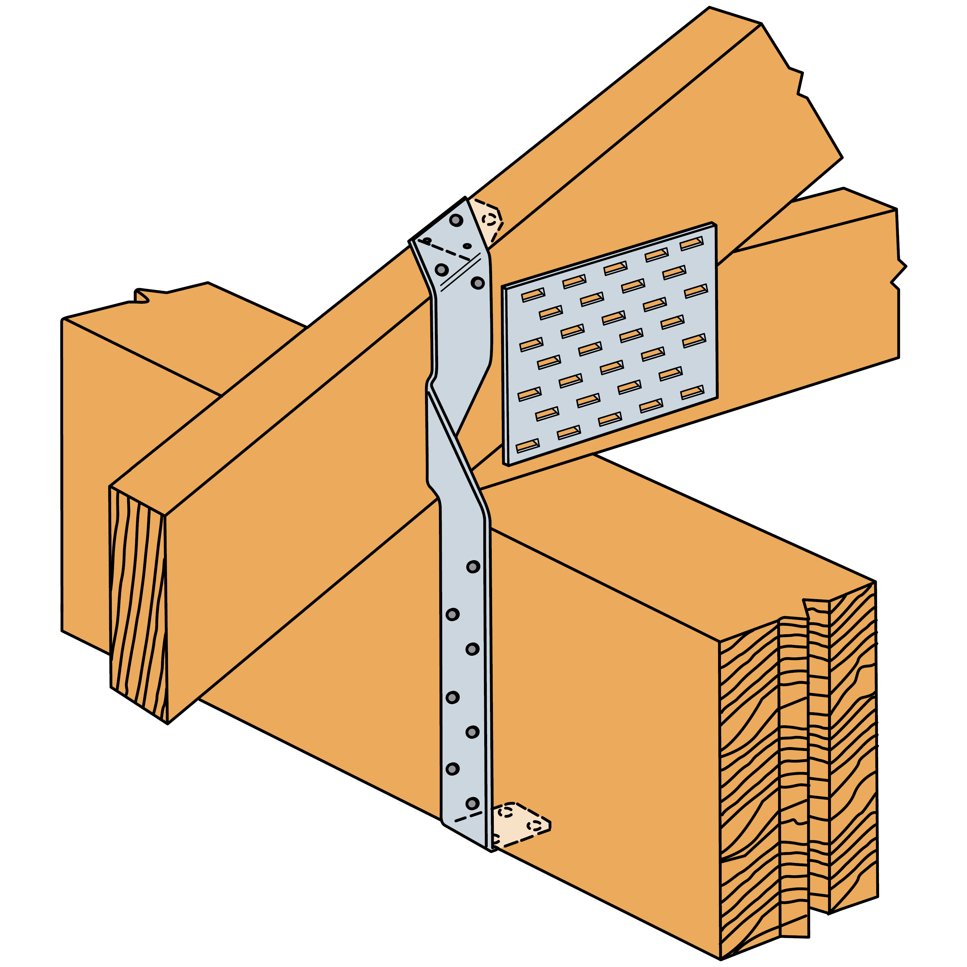 Install strap ties where tension connections are required. Commonly used as ridge ties and at wall intersections.