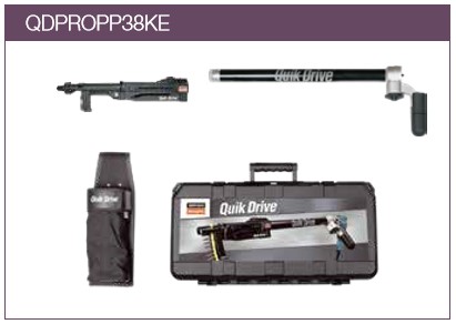 The QDPROPP38KE Quik Drive attachment has an innovative precision placement nosepiece which allows for easy location of the holes in metal roofing clips. Quik Drive attachments are manufactured containing PTFE to reduce friction and impart non-stick properties meaning that no lubrication is required. The QDPROPP38E kit comes complete with extension pole to allow for stand up and drive, improved ergonomics and increased health and safety benefits.