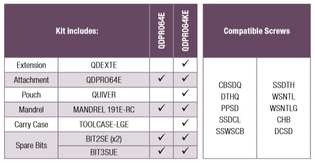 The QDPRO64E is a Quik Drive attachment suitable for screws ranging from 38mm to 64mm in length. The serrated nose piece provides increased stability and prevents skidding on smooth or slippery surfaces. Quik Drive attachments are manufactured containing PTFE to reduce friction and impart non-stick properties meaning that no lubrication is required. Available with or without extension pole.