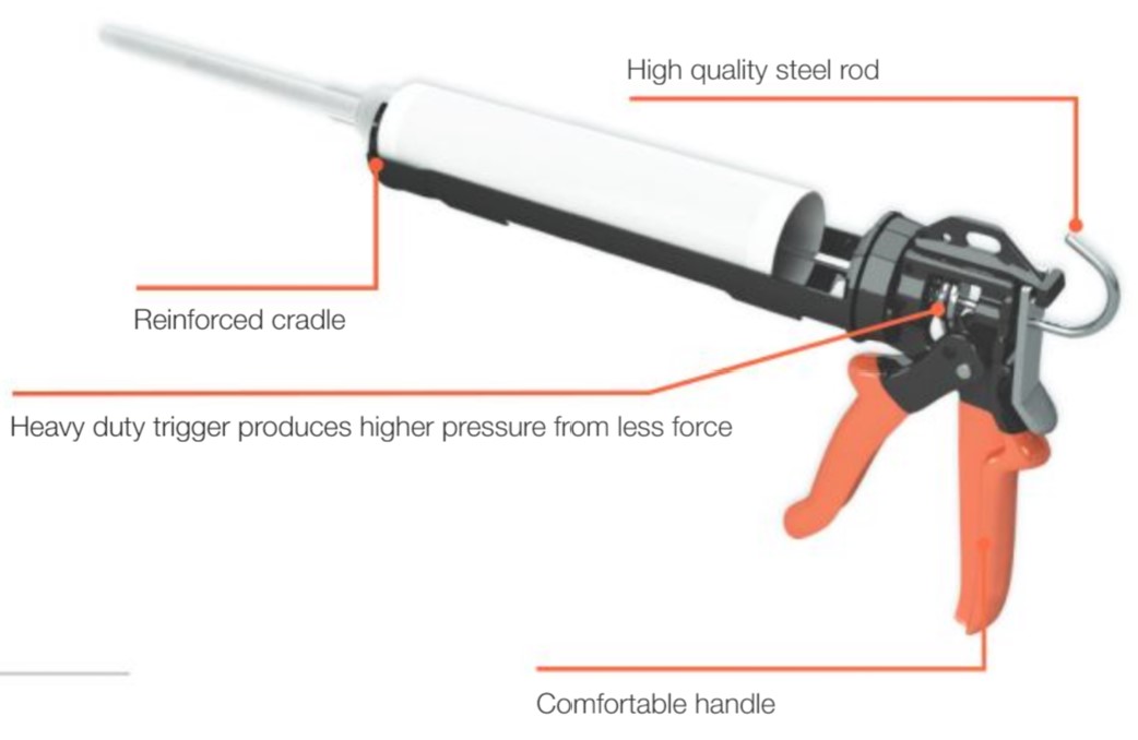 Unlike ordinary cartridge guns, the DT300 and DT380 is machined to cope with the heavier duty demands of concrete resins, dispensing smoothly with less effort.
