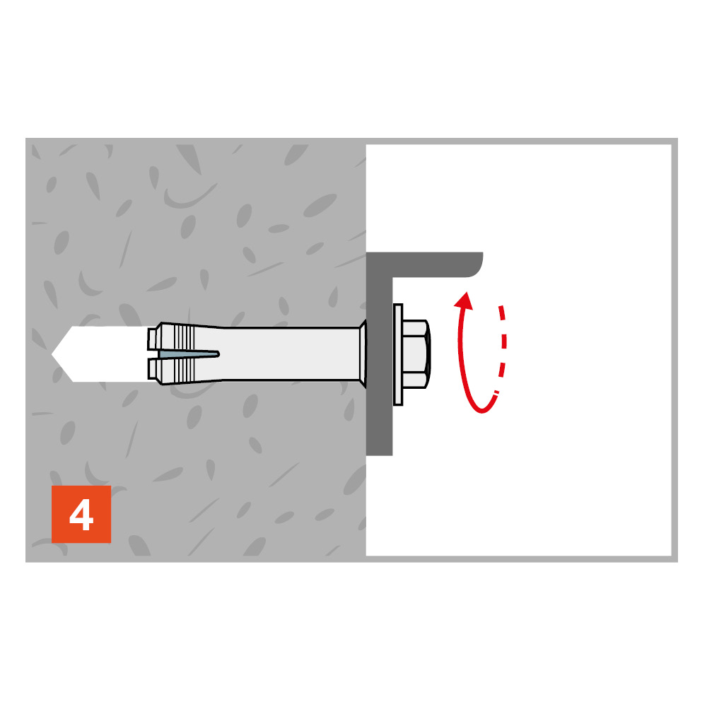 | References | Product Reference | Dimensions [dxL] [mm] | Ø drilling hole [d0] [mm] | Min. drill depth [h1] [mm] | Ø drilling fixture [df] [mm] | Wrench size [SW] [mm] | Installation torque [Tinst] [Nm] | Embedment depth [hef] [mm] | Min. support thickness [hmin] [mm] |