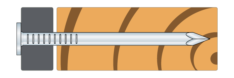 Clout nail with a flat head and round shank that can withstand rain and is used for fixing exterior plaster board, roofing felt, asphalt board, construction membrane and draught-proofing felt to a timber base.