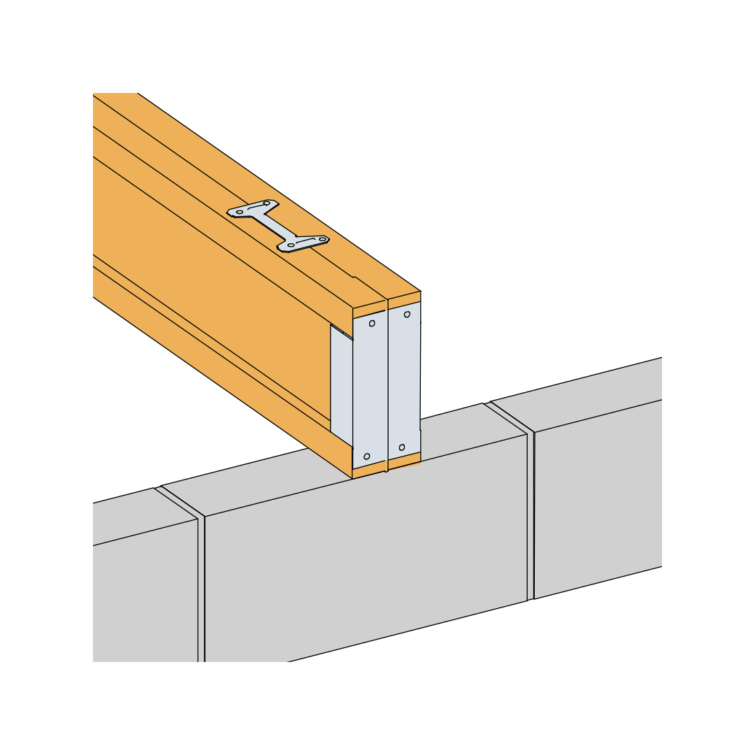 Step 3: Join the I-Joists together, use mastic or expanding foam between the two joists to ensure air tight seal. It is recommended that the I-Joists are joined together using 2 MJC (multi joist connector), one on top and one on the bottom of the I-Joist at 200mm from the bearing point (SDW screws can be used as an alternative to MJC). Check with I-Joist manufacturer.