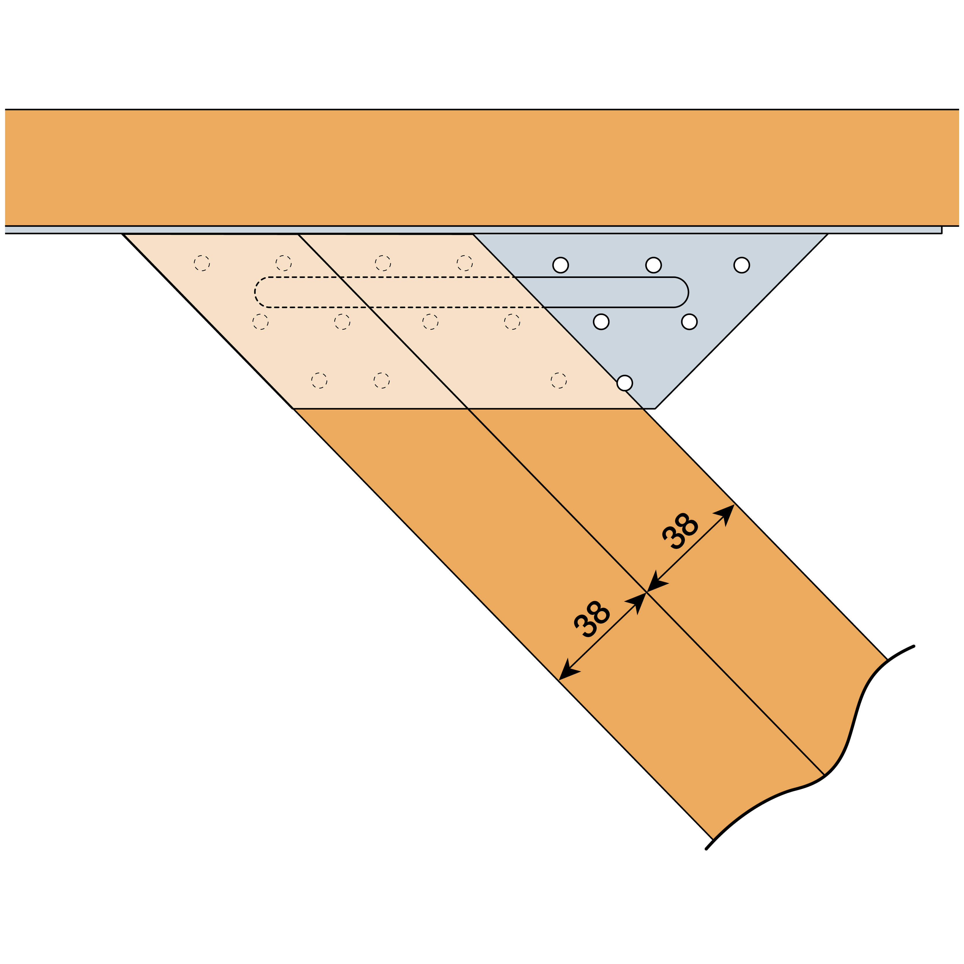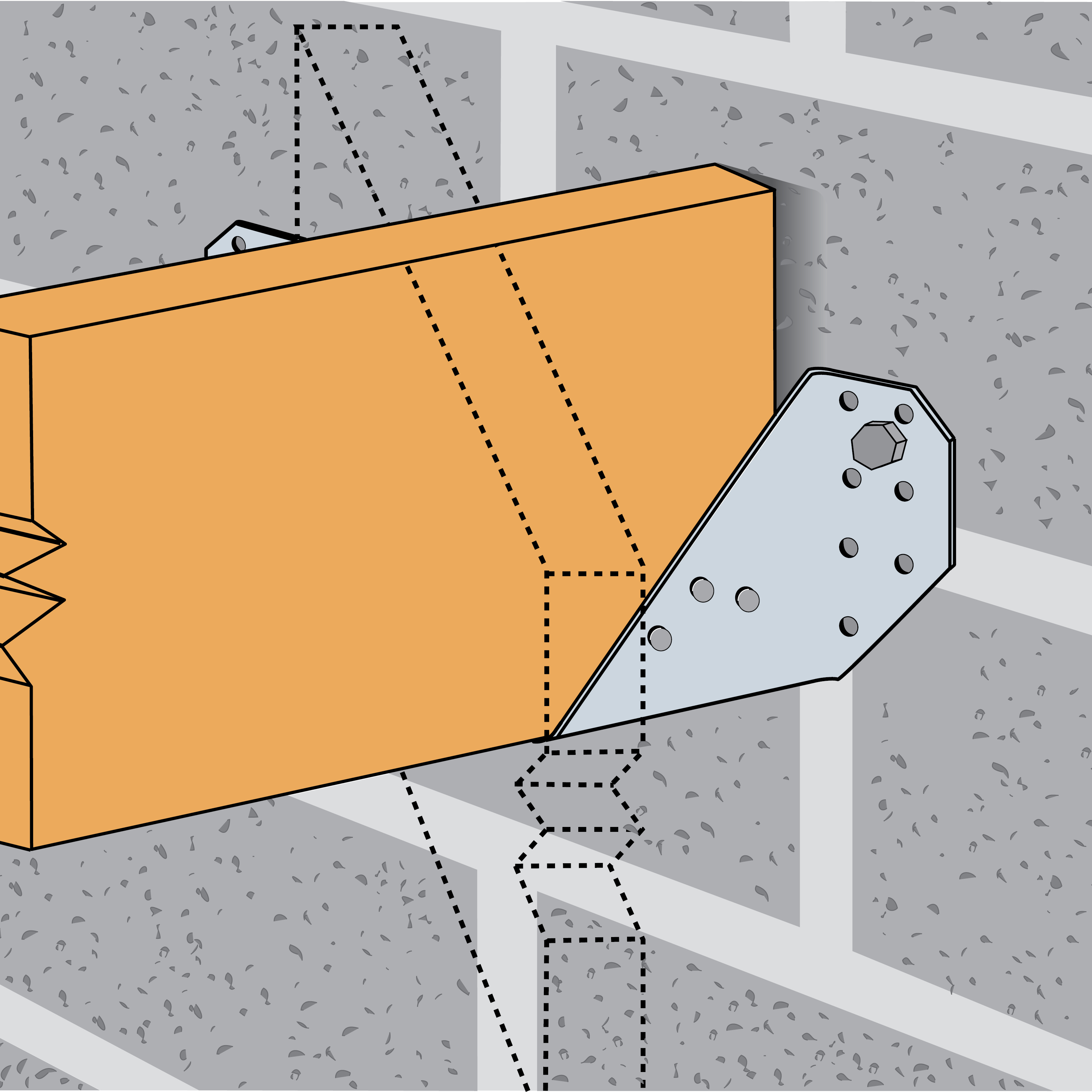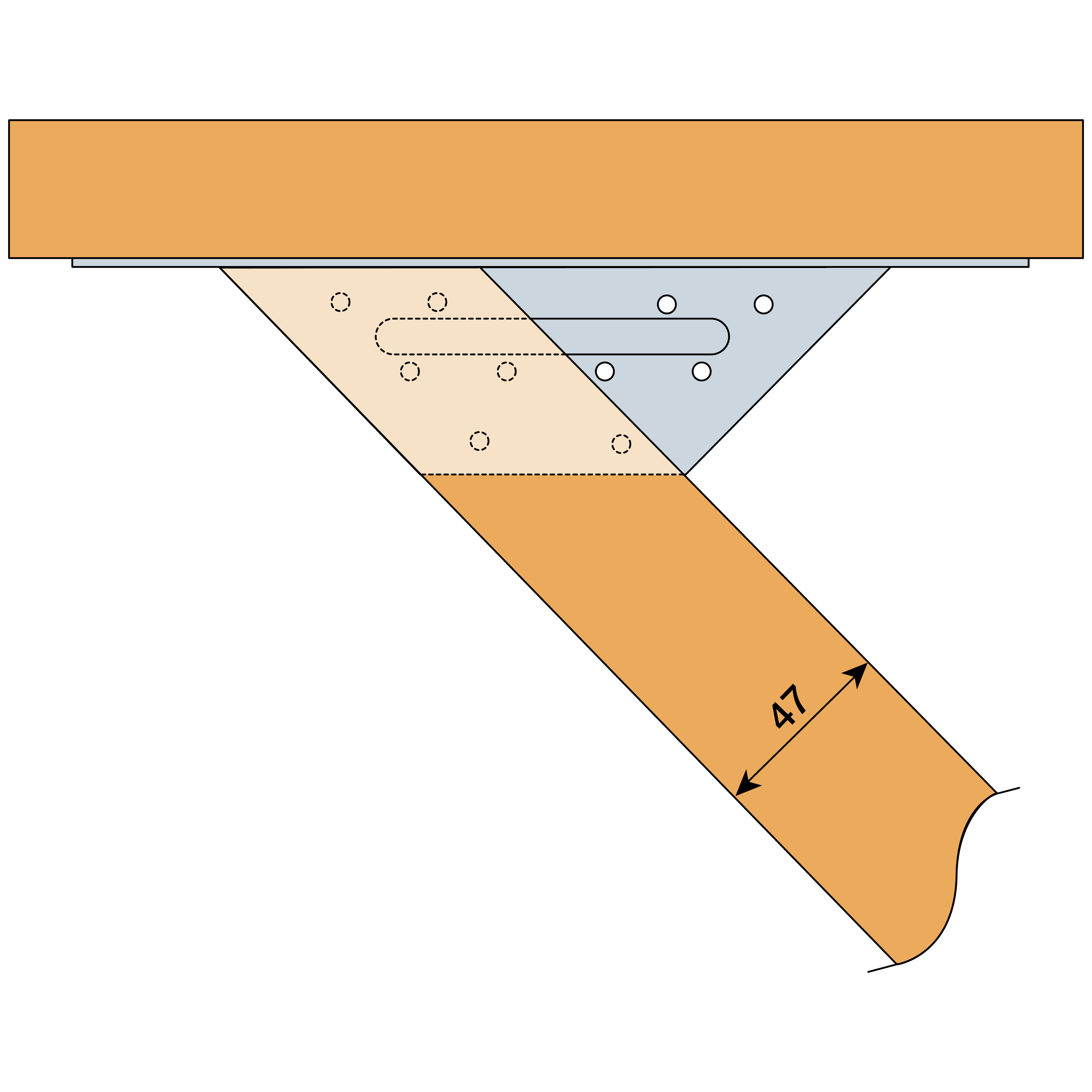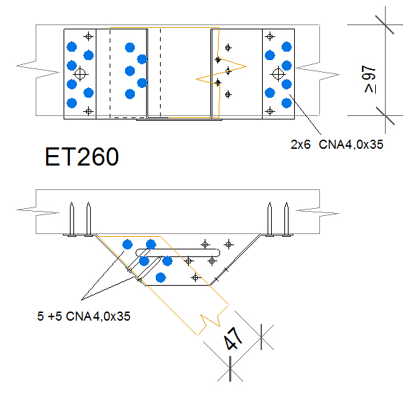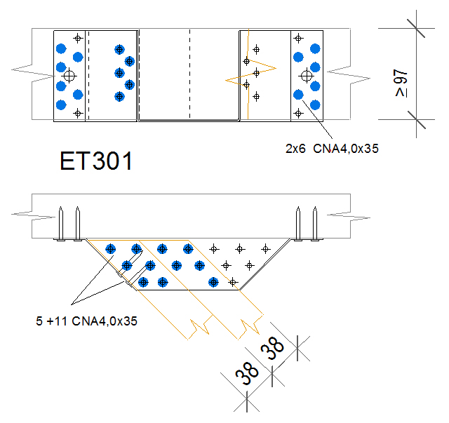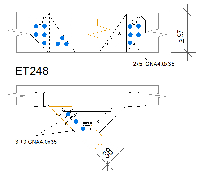 The ET is used for supporting skewed timber joists from timber members. This range is tested and standardised with a 45° skew angle left or right.