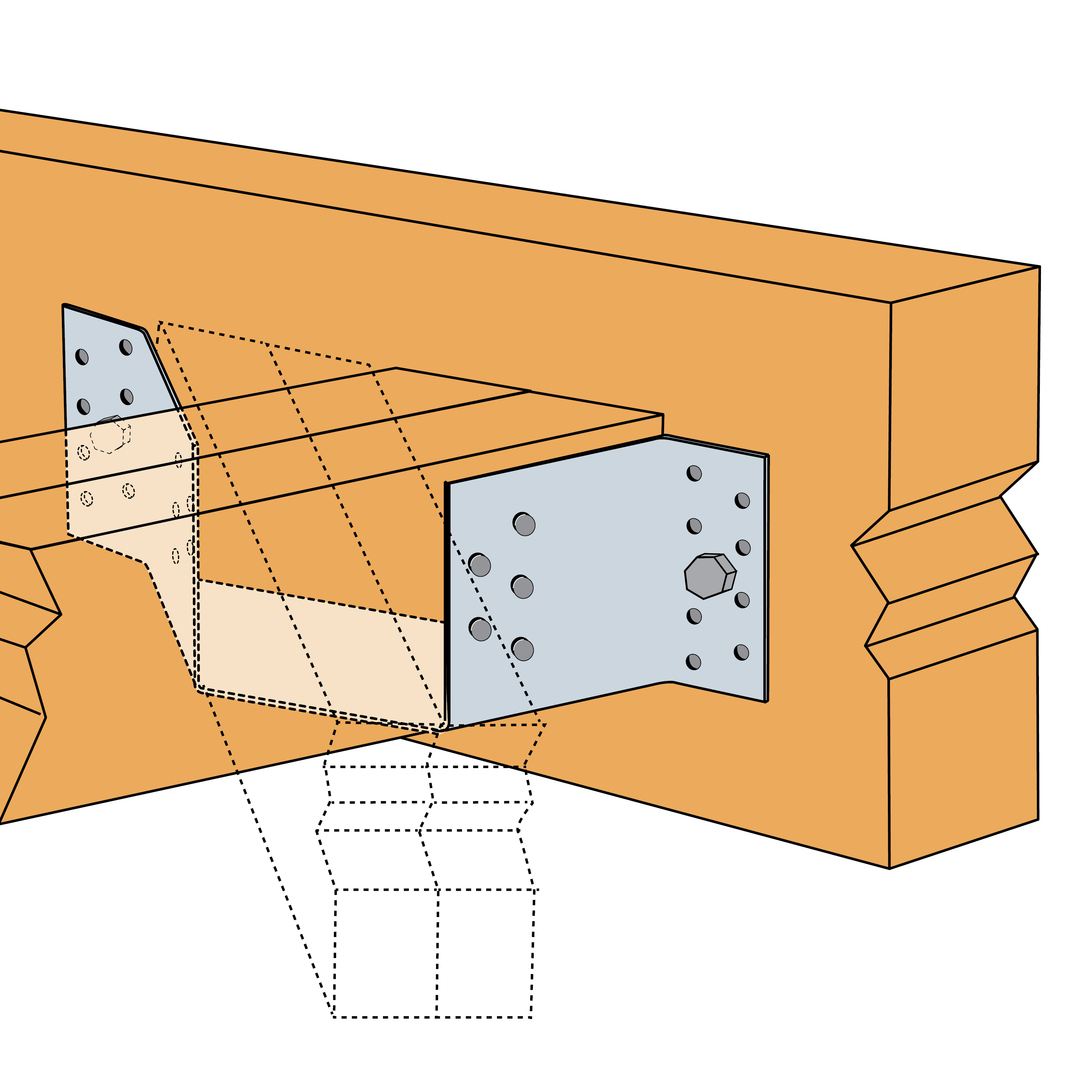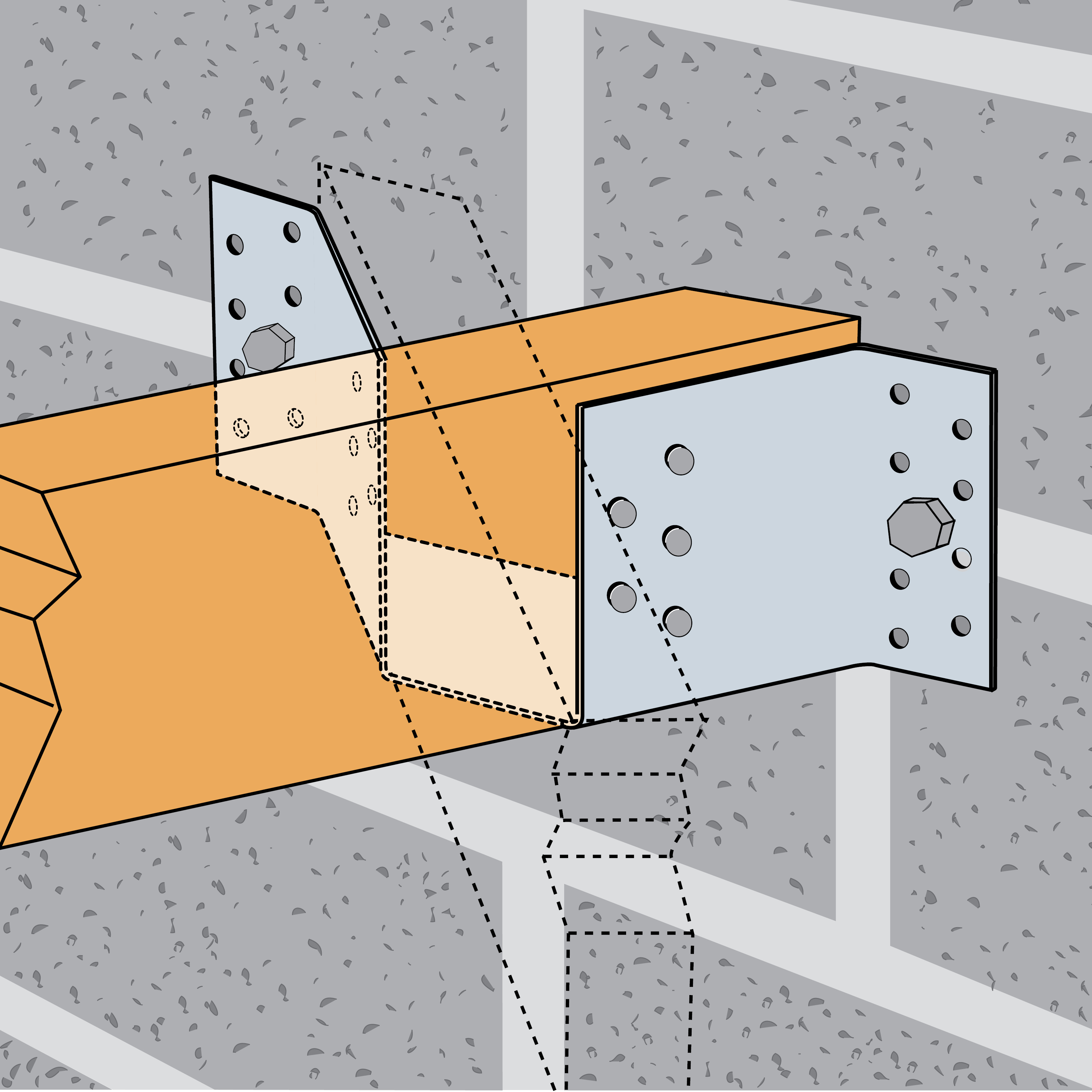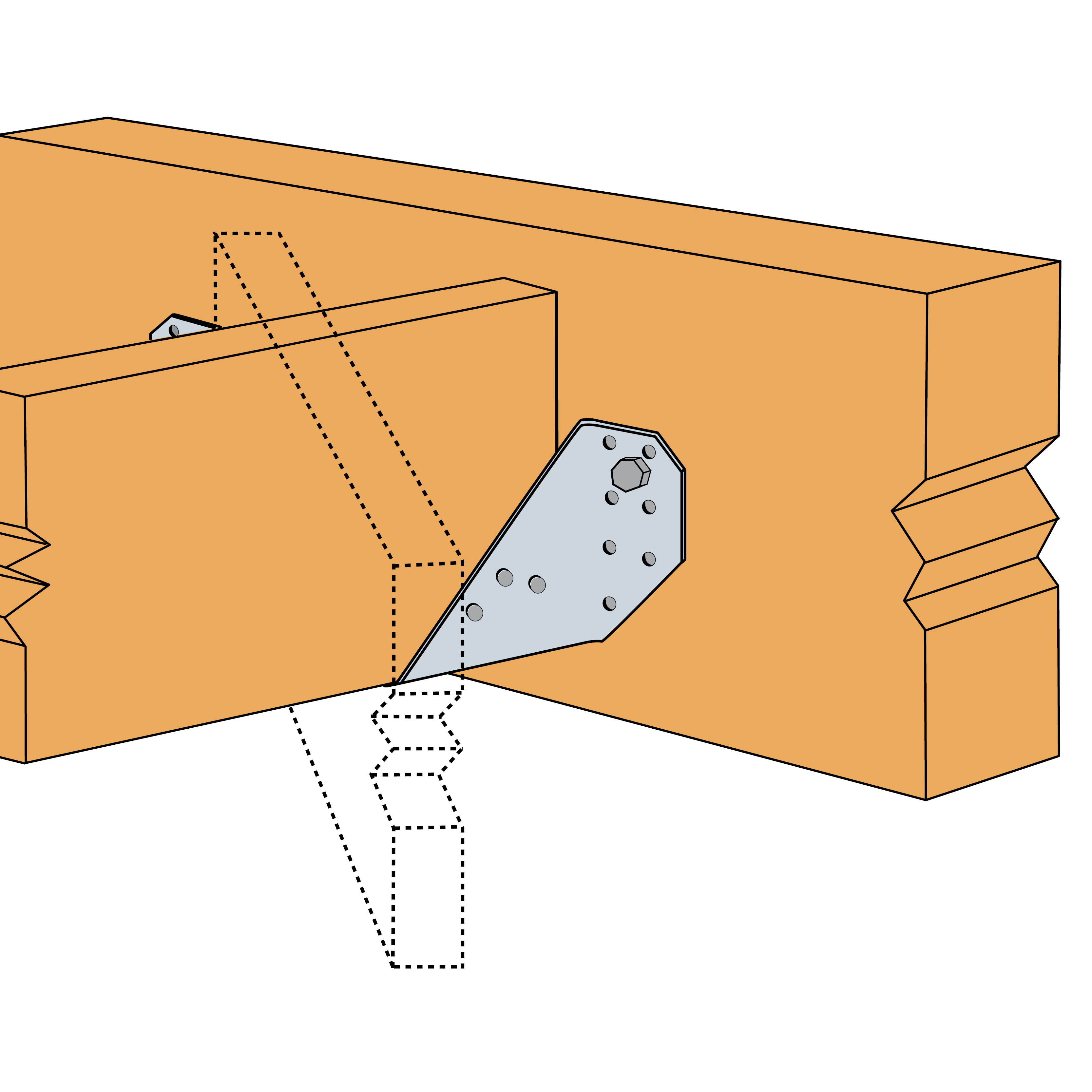 The ET is used for supporting skewed timber joists from timber members. This range is tested and standardised with a 45° skew angle left or right.