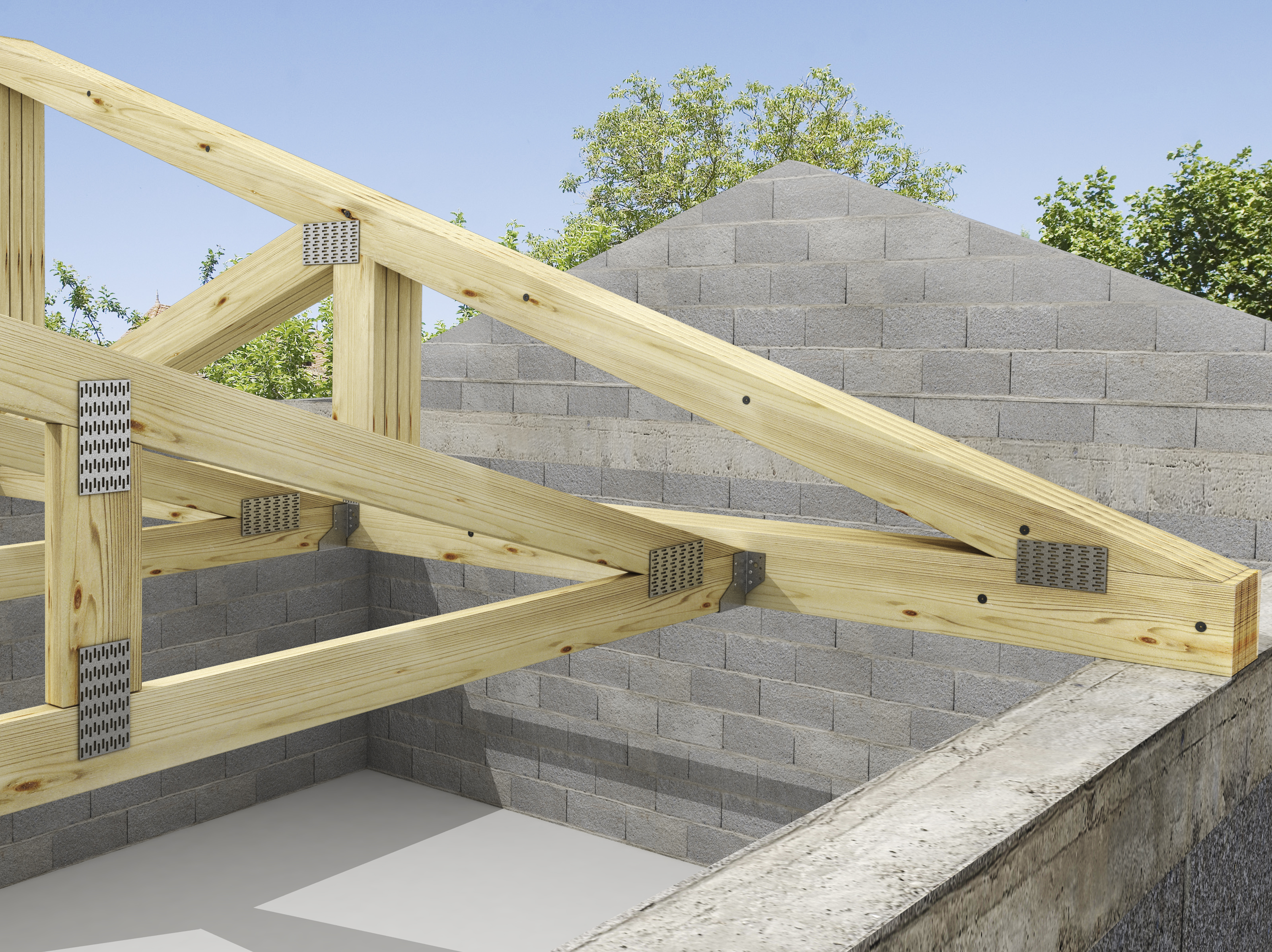 - Fastening of multiple wood elements including uprights and trusses
