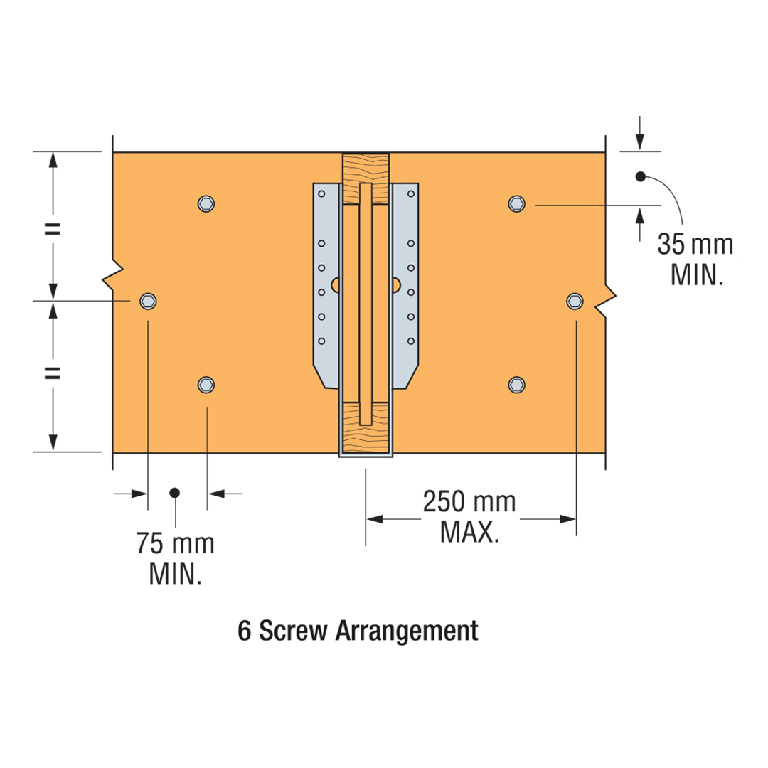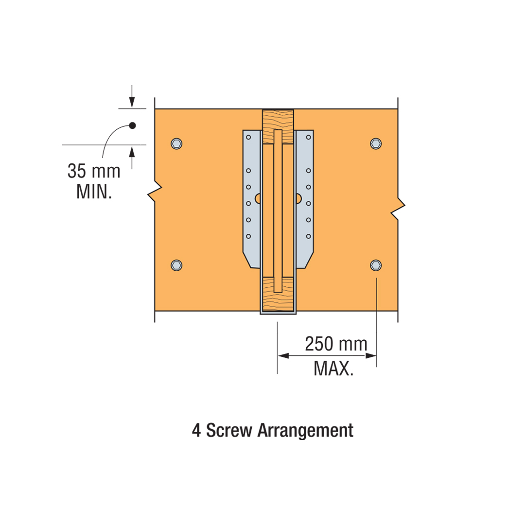 - Individual screw locations may be adjusted up to 75mm to avoid conflicts with other hardware or to avoid timber defects.