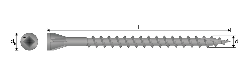 The DTHQ is a trim head screw with coarse thread suitable for timber to timber applications such as decking. It has a Type 17 point which eliminates the need for pre-drilling and reduces the installation torque. The trim head provides a neat finish when countersunk into the timber and the Quik Guard® coating allows the screw to be used in external environments.