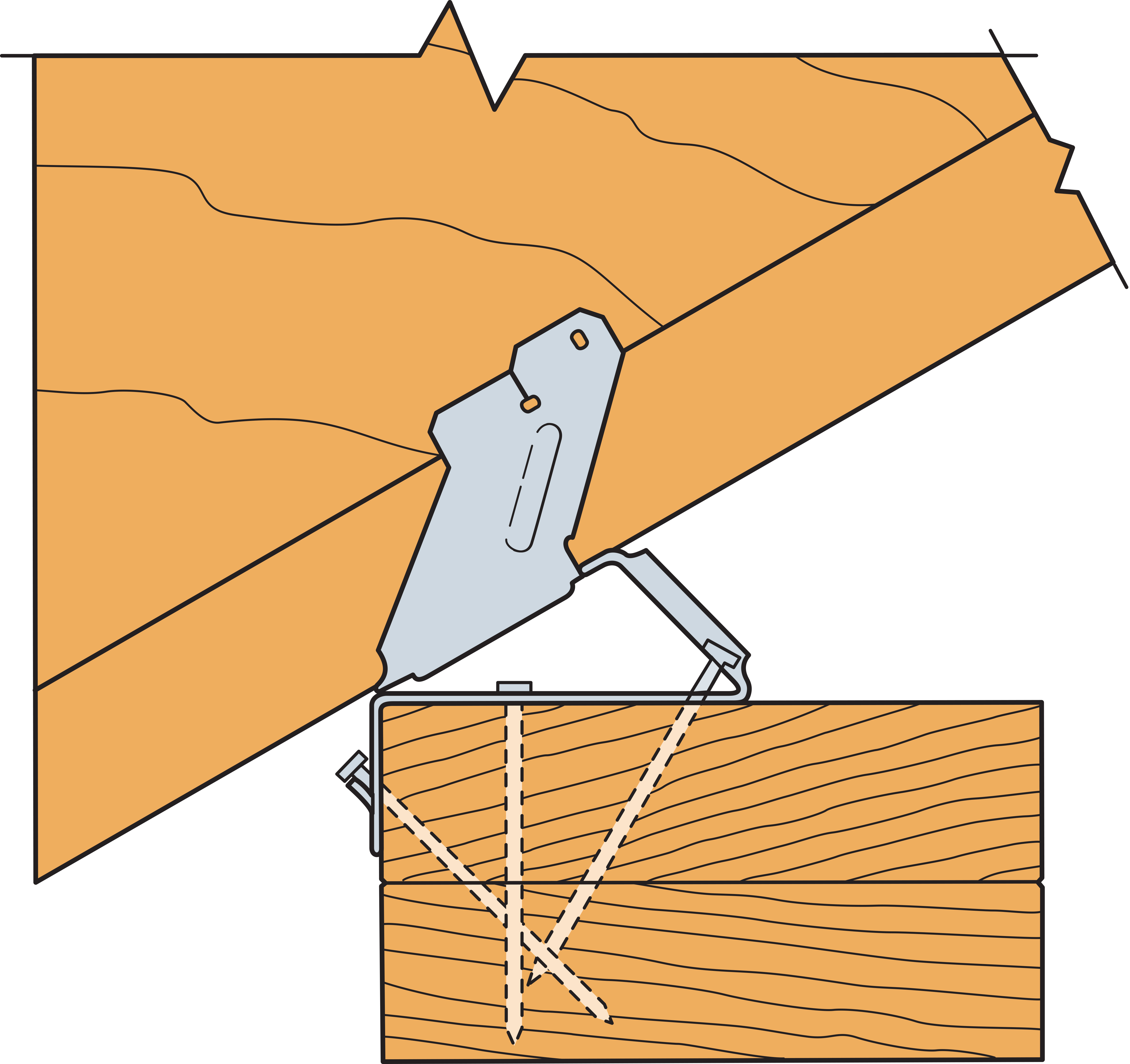 - No notching of the I-joist is required when using the VPA. This connector reduces the need for bevelled plates and toenailing. It has positive angle nailing to speed installation and to minimise wood splitting.